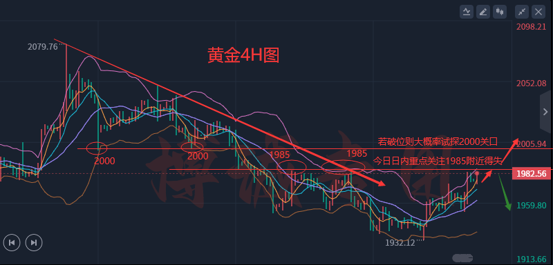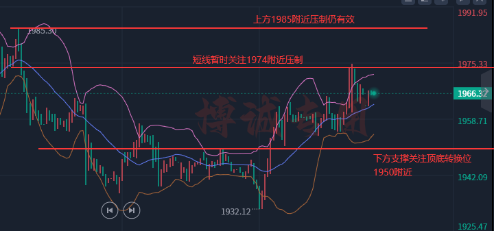 关注博诚,获取更多实时策略,点击头像或昵称,看我主页个人简介,获取本人指导热线,与本人交流! 【市场盘点】 周三,受累于鲍威尔重申鹰派立场,现货黄金日内大幅下挫,跌破1910关口并触及近4个月来新低,最终收跌0.32%,报1907.46美元/盎司。现货白银收跌0.7%,报报22.69美元/盎司。 美元指数在美盘前拉涨,一度涨至103.16的日内高点,而后未能稳站在103上方,最终收涨0.45%,报102.97。美国国债收益率有所下滑,美国2年期国债收益率回落至4.712%;10年期美债收益率回落至3.7%关口附近,收报3.714%。 因美国原油库存连续第二周下降,国际原油有所反弹,WTI原油
