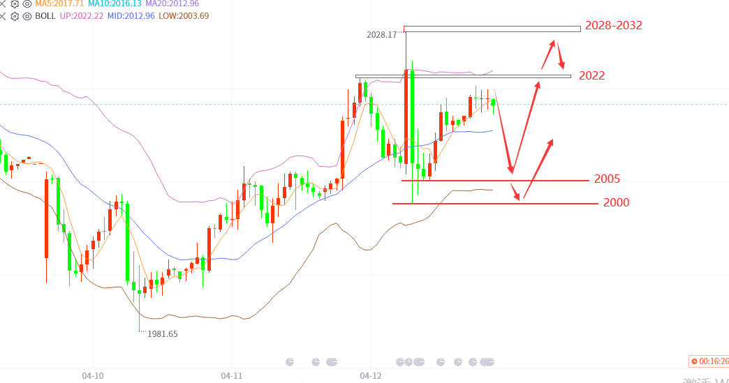 4.21今日黄金行情走势分析: 黄金昨日开盘于1994一线,开盘之后亚盘一直处于小幅震荡,一直到欧盘时段,黄金遭遇小幅砸盘上行,几乎一直处于2000附近下方徘徊,一直到美盘时段,美数据公布,黄金迎来众多买盘砸盘推涨,重新回到2000大关上方,最高处于2011一线,随后快速回调回到2000大关附近震荡,最终黄金收盘于2004一线,虽然说黄金昨日处于多头占优,但是不得不说,2010是一个出逃的点,毕竟各位昨晚如何看到交易量就知道,一到2010,黄金直接迎来众多抛售,快速回调,对于涨势而言,无非还是市场混乱,机构接机搞事,只要是一个美数据,就砸盘,真要说昨日的美数据重要么,其实并不重要,终究还是市