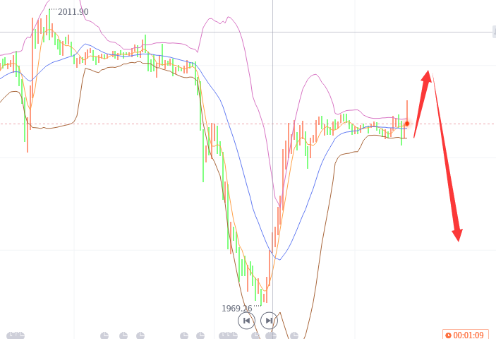 4.20今日黄金行情走势分析: 黄金最近波动太大,而且多空变盘都是直线30美金过山车,这就是说历史相对高位,多空开始分歧 ,只要后面基本面稍微改变,那么单边趋势都是加速出现,经过一周横盘争夺,目前依然在1960到2015区域,是多空争夺的重点,2000成为来回拉锯的常态,昨日最低1969区域,反弹近25美金的下影线,说明底部支撑买盘强劲,那么今日25美金下影线进行修复,只要不破1969就是延续反弹,如果破位1969区域,那么昨日的反弹就是一个多头自救的诱多,日线均线看压力下移2005区域,成交密集去也和前一次大跌起跌位置集中2010到2015区域,那么今日支撑和压力都是显然清楚,最近波动加大