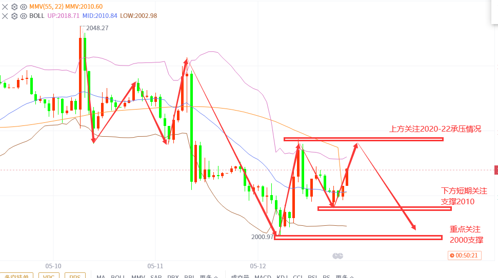 消息面解析: 美联储周一公布的调查数据显示,美国的银行在今年头几个月收紧了信贷标准,而且企业和消费者的贷款需求疲软,这是美联储利率上升开始对金融业产生影响的最新迹象。除了周三将公布的美国消费者价格指数(CPI)之外,市场还在关注围绕债务上限的问题看进展。5月9日,重点关注拜登与美国国会的四位领导人在白宫就债务上限问题举行会议结果。 行情回顾: 周一行情不大,但基本盘是按照彦溱的预测走,不管美元的反弹,黄金的先涨后跌,还是看好黄金在2032/2030压制下慢跌,都走出了预期,经过午夜休整,黄金回落至2020附近,全天上下也就10美金,如果你关注了彦溱的分析,相信2030的空单概括了全天的利润。