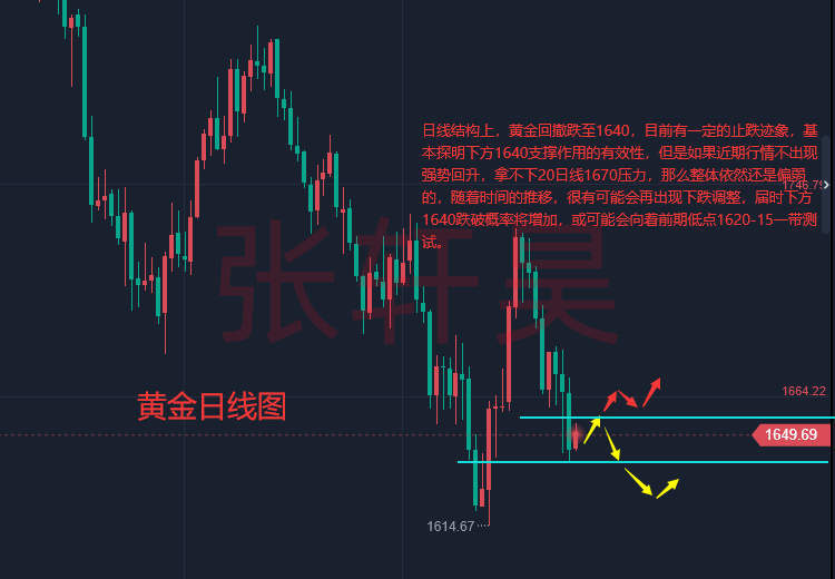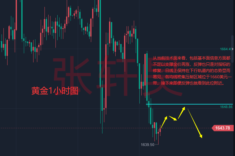 1.市场消息面: 10月19日讯 日内欧盘时段,现货黄金重启跌势,一度跌创9月28日以来新低至1637.61美元/盎司。目前交投于1640美元/盎司附近。美联储激进加息预期打压了非孳息资产黄金的吸引力,黄金或测试1600美元关键支撑。 【明尼阿波利斯联储主席卡什卡利:美联储或需将利率提高至4.75%以上】 明尼阿波利斯联储主席卡什卡利周二表示,如果基础通胀不断上升,美联储可能需要将基准政策利率提高到4.75%以上。 卡什卡利说:“我曾公开表示,我支持在明年年初将联邦基金利率上调至4%左右,但如果我们不能在基础通胀或核心通胀上取得进展,我不明白为什么要在4.5%、4.75%或类似的水平停止加息