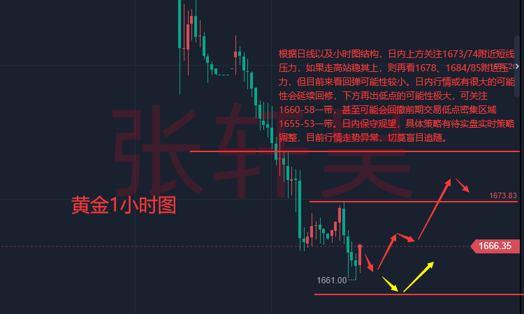 1.市场消息面: 10月1日讯,本周,大量的美联储官员发表讲话,鹰派占据了明显上峰。受此影响,美元指数和美债收益率都创下新高,而下周,美国即将公布最新的9月份非农就业报告,预计市场将会更加波动。 本周黄金下探1615美元后急速拉升,最高反弹至1675美元,并企稳在1660关口上方。本周周三,美国亚特兰大联储主席博斯蒂克继续鹰派的表示,支持在今年年底前进一步加息125个基点,以应对比他预期更糟糕的通胀。他还表示,美联储货币政策现在必须采取适度的限制性立场,他倾向于2022年年底加息至4.25%-4.50%区间。博斯蒂克还表示,预计美联储将在11月加息75个基点,然后在12月加息50个基点,并且