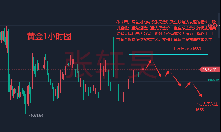 1.市场消息面: 9月23日讯 日内欧盘时段,现货黄金震荡下跌,目前交投于1650美元/盎司附近。虽然地缘局势紧张和全球经济衰退担忧吸引避险买盘,黄金小幅反弹,但美联储加息前景仍旧压制金价。本交易日重点关注欧美国家9月份制造业PMI数据的表现,目前市场预期比较悲观,预期可能会创下逾两年新低。 【全球央行相继提高利率 经济衰退担忧不断】 继美联储之后,全球多家央行周四(9月22日)提高利率,引发对全球经济衰退的担忧。欧洲央行董事会成员施纳贝尔为欧洲央行进一步加息计划辩解,称欧元区通胀将继续走高。 MKS PAMP金属策略主管Nicky Shiels在她的最新研究报告中表示:“鲍威尔既不是鹰派也