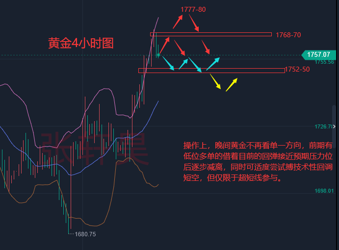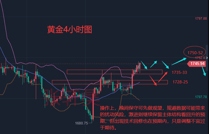 1.市场消息面: 7月28日讯日内欧盘时段,现货黄金继续上涨,目前交投于1745美元/盎司附近。上一交易日美联储主席鲍威尔的鸽派讲话令美元承压下跌,黄金短线有望继续震荡走高。 晚间市场将迎来美国二季度GDP数据投资者需密切关注 北京时间周四(7月28日)20:30,美国将公布第二季度国内生产总值(GDP)初值。美联储已经在过去两个月中两次加息75个基点,这种明显的快速加息可能会使经济增长放缓。 媒体对经济学家的调查的预测中值显示,美国第二季度GDP将同比增长0.5%。不过,美国亚特兰大联储公布最新预测显示,今年第二季度美国实际GDP萎缩1.2%。如果亚特兰大联储预测成为现实,意味着美国经济陷