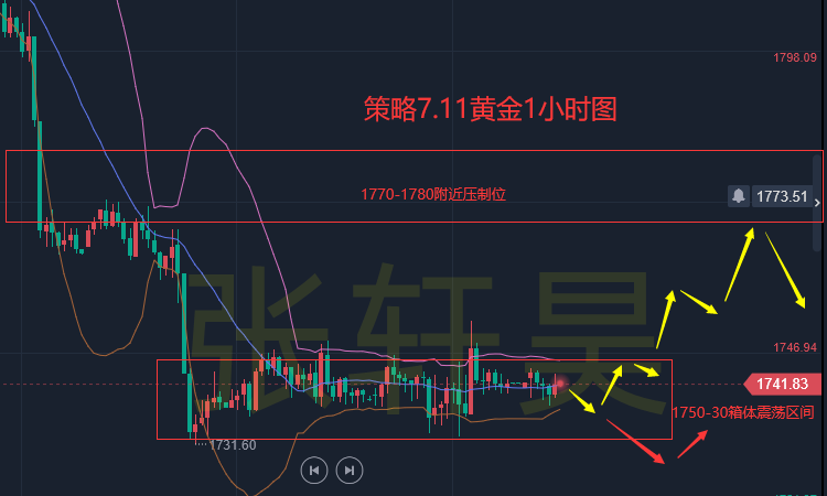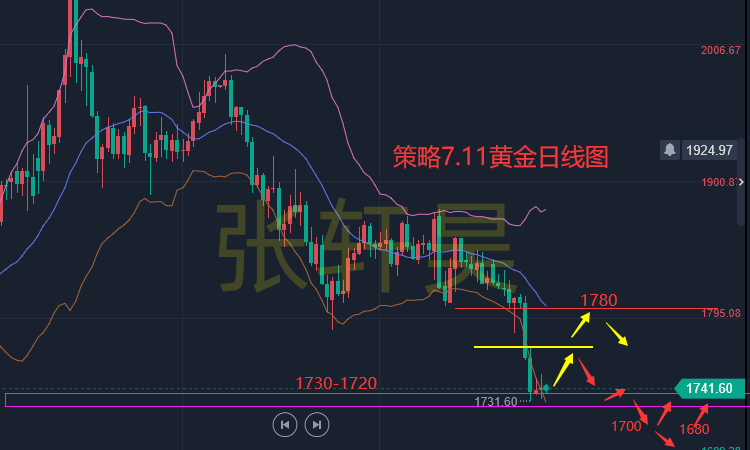 1.市场消息面: 周一(7月11日),黄金价格跌至9个多月来最低结算价,此前连续第4周下跌,因美元走强继续令黄金承压。美市尾盘,现货黄金收报1733.89美元/盎司,下跌7.76美元或0.45%,盘中最高触及1744.39美元,最低触及1731.39美元。COMEX 8月黄金期货收跌10.60美元,跌幅0.61%,报1731.70美元/盎司,创逾9个月最低收盘价。 今年,黄金在达到2000美元以上的峰值之后走软,这主要是美元走强和美国国债收益率上升的结果,因其使得这种闪闪发光的金属对投资者的吸引力下降。美国国债收益率从6月中旬达到的年内高点回落后,在过去几天有所回升。与此同时,随着欧元等主要