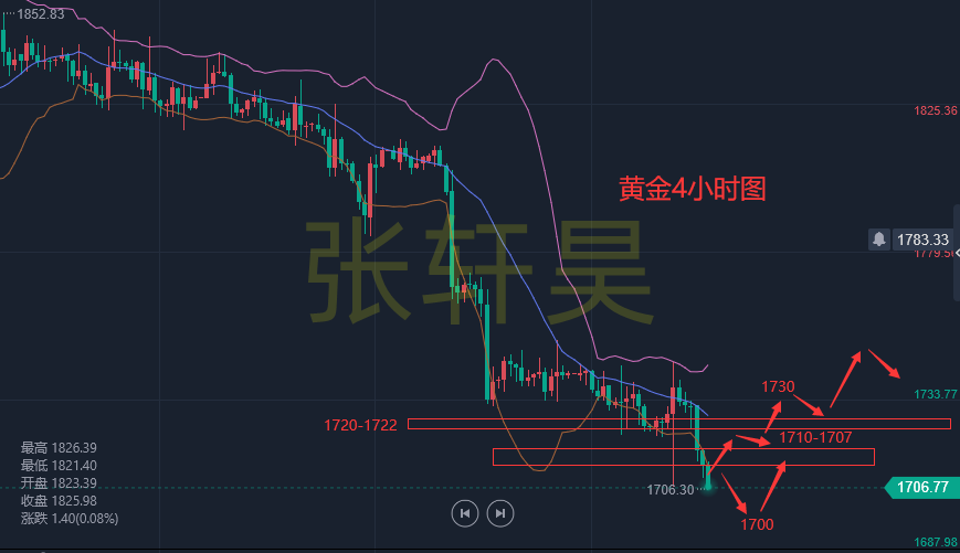 1.市场消息面: 昨晚,美6月CPI增幅强于市场预期,为40年来最大涨幅,表明通胀正迅速向错误的方向发展,也基本确定美联储将在7月底至少再加息75个基点,并且市场对美联储7月加息100个基点的预期升温,美联储两位官员也传达了类似的信号,黄金价格一度跌至1700关口附近,而且美元当时也冲高回落,吸引了一些逢低买盘,给金价提供了短线反弹机会,不过整体来看,黄金走势还是偏弱,短线仍有震荡下探1700关口附近支撑的可能性。 俄乌地缘局势和对经济衰退的担忧,仍吸引逢低买盘支撑黄金价格,但加拿大央行已经加息100个基点,美通胀居高不下,美联储激进的货币政策立场迄今在让需求降温和将通胀降至2%的目标方面进