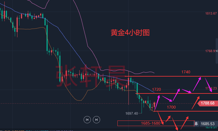 1.市场消息面: 周五(7月15日)欧市早盘,美元指数基本持平,目前位于108.60附近。现货黄金维持跌势,金价现报1703美元/盎司附近。本交易日投资者聚焦美国零售销售数据,预计将引发市场剧烈波动。 香港时间周五20:30,投资者将迎来美国6月零售销售数据。若美国零售数据强于预期,美元有望延续近期的强劲走势,从而打压其它主要货币和黄金。 根据权威媒体调查显示,美国6月零售销售月率料增长0.8%,此前5月为下降0.3%。美国6月核心零售销售月率料增长0.6%,此前5月为增长0.5%。 美国零售销售数据素有“恐怖数据”之称,因其通常对金融市场有较大的影响,因此很可能对美元、黄金等资产走势产生影
