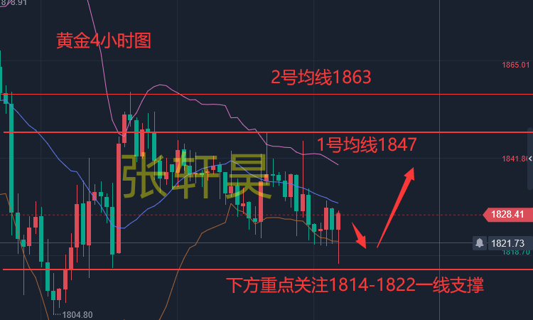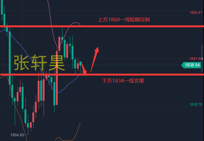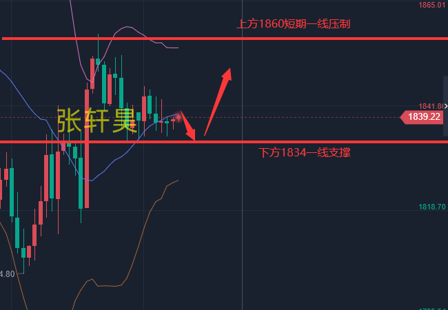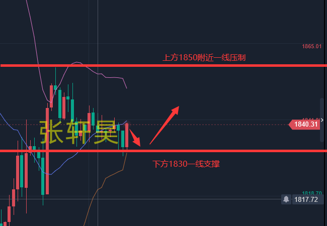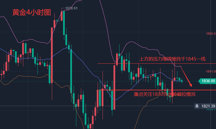 黄金技术面分析: 黄金从4小时来看黄金触底反弹,延续上行之势,直到接近1834一线隔夜高点才有所减弱,随后短线修复后继续冲高至1836一线开始回落。加之上周四凌晨美联储纪要以及包威尔讲话的驱使下,黄金回踩后继续踏入反弹道路上运行,最高反弹至1857一线,那么下周行情我们该如何研判呢!首先我们先看大趋势是多还是空,结合小周期走势,回踩布局多单提供做单思路。 从4小时图来看,目前整体行情重新回归宽松震荡之中,震荡依旧没有改变。因高点和低点分割线50位置从新归位,那么事实证明宽松震荡是必然。加之实体K线已经站上1830-1834一线。所以晚间选择回踩至台阶支撑位1830-1834一线看涨,反弹次高