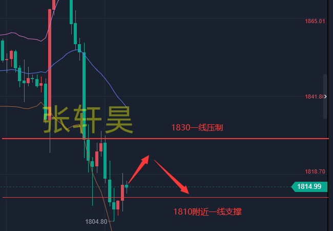 黄金技术面分析: 昨日,黄金再度延续下跌,最低触及1805一线附近,市场等待美联储的关键政策声明,后者将揭示联储的政策路径会有多激进,目前利率期货显示美联储本交易日将加息75个基点的概率高逾90%,摩根大通和富国银行等多家主要银行和投行普遍预计,美联储或将宣布加息75个基点,以遏制通胀再度飙升,这帮助美元周二再度刷新近20年高点至105.66,这也可能是美联储自1994年以来最大加息幅度,日内的关注重点就是晚间即将公布的利率决议,如果能够按照预期,黄金价格很有可能跌破1800美元关口。 随着市场要求美联储采取更激进措施的呼声越来越高,黄金市场面临巨大的抛售压力,上周五公布的美国消费者价格指数
