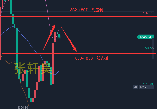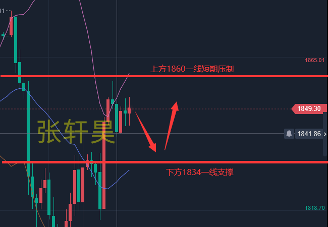 黄金下周分析: 黄金从4小时来看黄金触底反弹,延续上行之势,直到接近1834一线隔夜高点才有所减弱,随后短线修复后继续冲高至1836一线开始回落。加之凌晨美联储纪要以及包威尔讲话的驱使下,黄金回踩后继续踏入反弹道路上运行,最高反弹至1857一线,那么下周行情我们该如何研判呢!首先我们先看大趋势是多还是空,结合小周期走势,回踩布局多单提供做单思路。 从4小时图来看,目前整体行情重新回归宽松震荡之中,震荡依旧没有改变。因高点和低点分割线50位置从新归位,那么事实证明宽松震荡是必然。加之实体K线已经站上1830-1834一线。所以晚间选择回踩至台阶支撑位1830-1834一线看涨,反弹