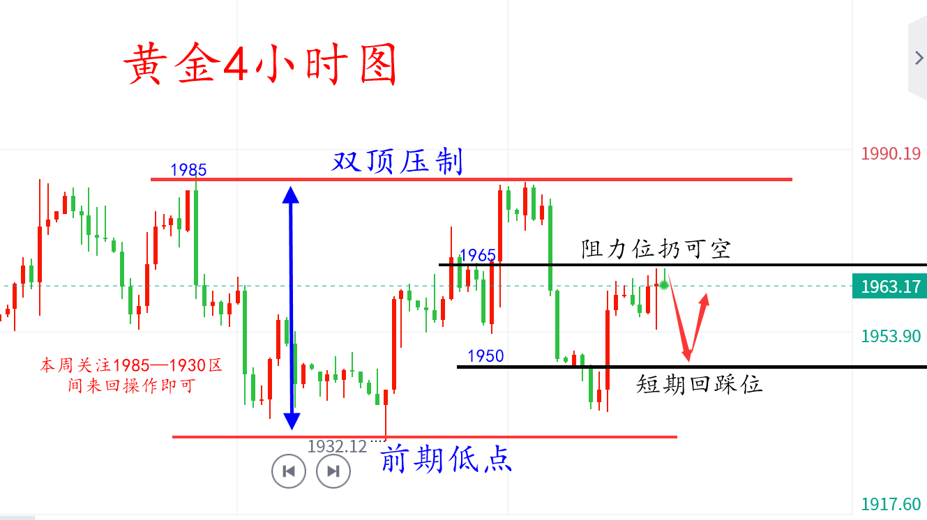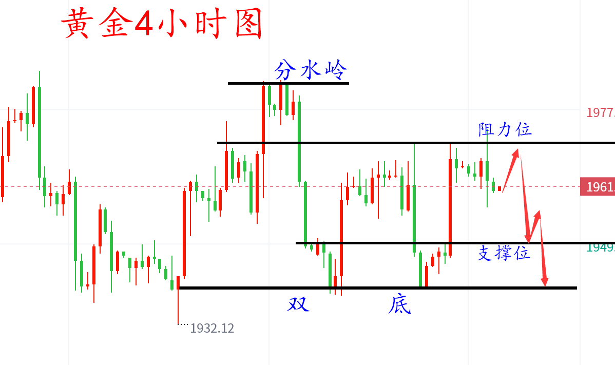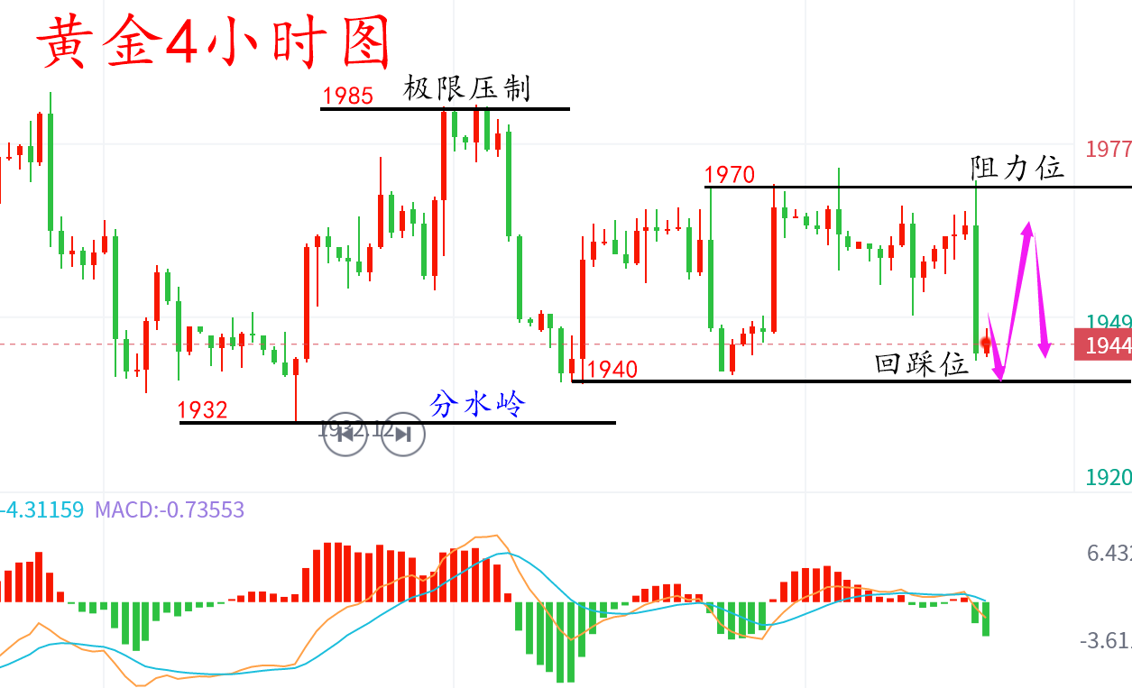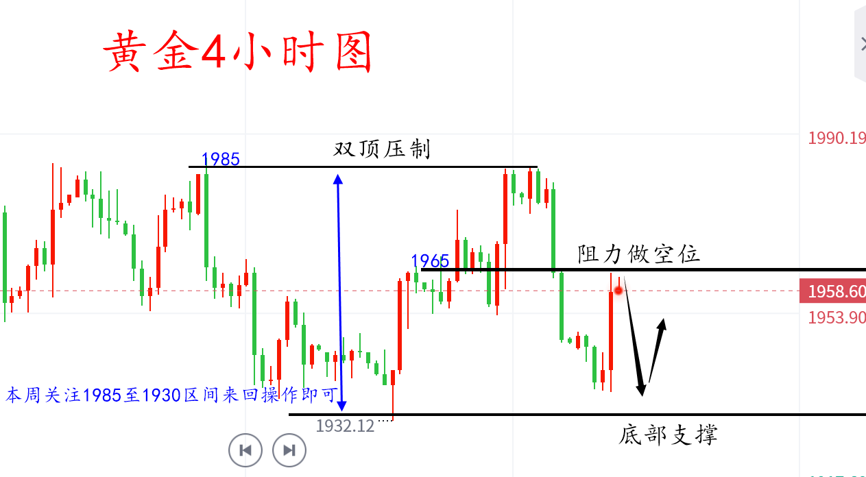交易,不要期望人人都理解你。你做的再好,也不一定人人都喜欢你,你做的再多,不一定人人都说好,毕竟别人在乎结果,从不去看你艰辛过程。一样嘴不一样的说法一样的眼睛,不一样的看法;一样的心,不一样的想法。人只能做好自我,拥有自信要明白:交易这个市场不同情弱者更不相信眼泪,鹰,不需鼓掌,也在飞翔;小草,没人心疼,也在成长;深山的野花,没人欣赏,也在芬芳。做事无需让人理解,只需尽心尽力,交易不必讨人喜欢,只需问心无愧!交易要有《德》 对人要用《心》。 黄金 方面,昨天亚盘延续非农下跌之势,亚欧盘最低下跌触及到了1937附近,下方支撑就在1935-30附近,宽幅震荡行情已经显现,美盘如期出现大幅拉升V型
