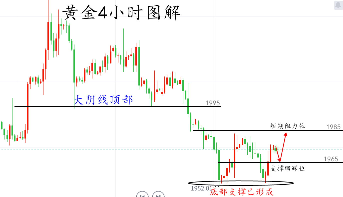 不愿意放弃手中的一粒石子而最终错失地上的宝石,阻止你前行的,不是人生道路上的一百块石头,而是你鞋子里的一粒沙子。本性的苏醒,往往在遭遇真实之后,在比夜更深的地方,一定有比夜更黑的眼睛。没有糟糕的事情,只有糟糕的心情。追逐后的疲惫需要时间才能缓解,而交易留下的伤痛需要总结后重新征战才能痊愈。不进步,就是退步,不转变,就是死路。锲而不舍、矢志不渝,必将终有所获。 黄金 方面、昨日围绕1983-69小区间震荡,由于上周五大阳上升,短线表现强势,所以昨日早盘思路明确回撤1969会有一波探底回升,但是整体趋势已经跌破2000和1970两个关键支撑,形态已经构建形成顶部形态,而且日线也是连阴单阳调整,形