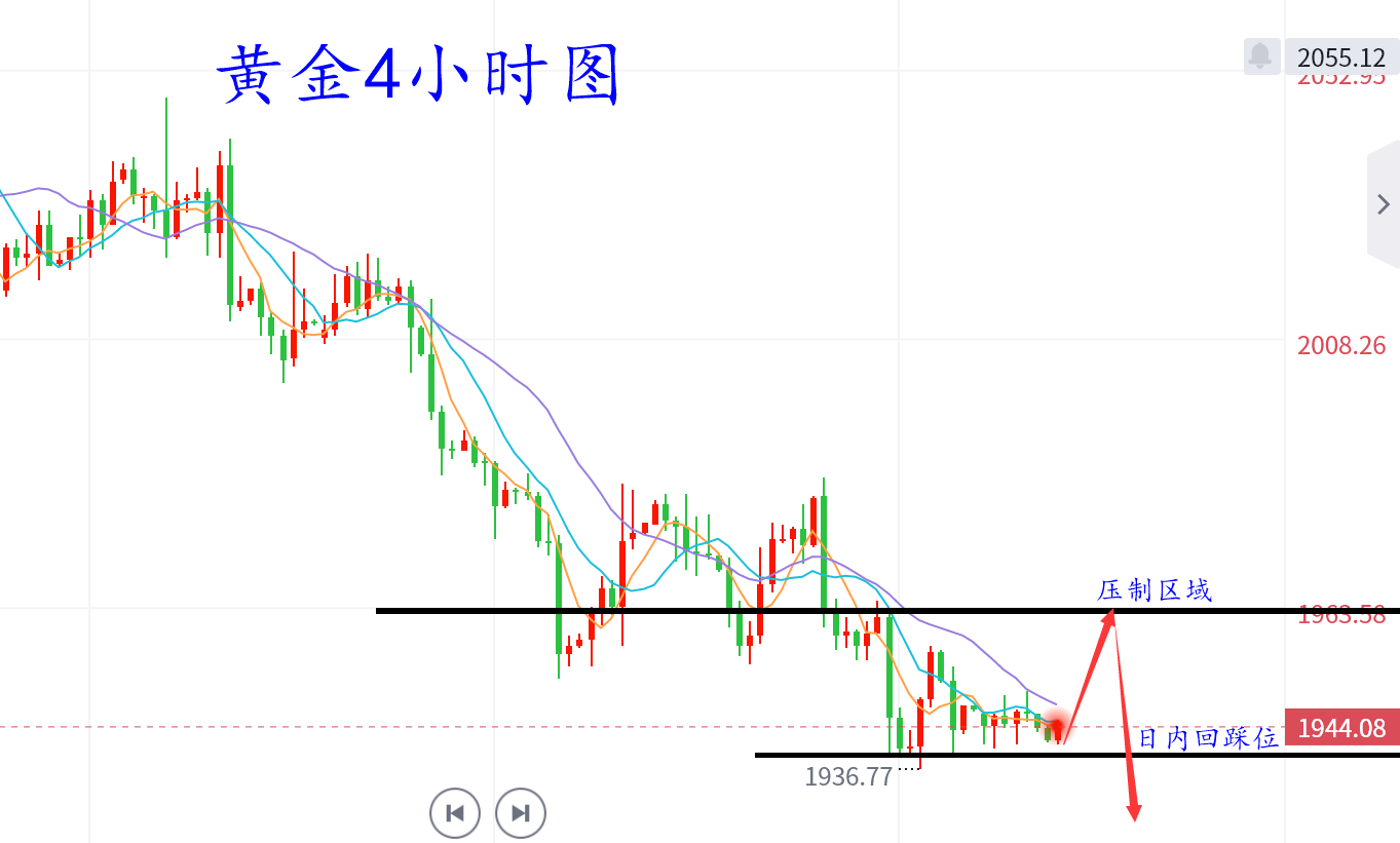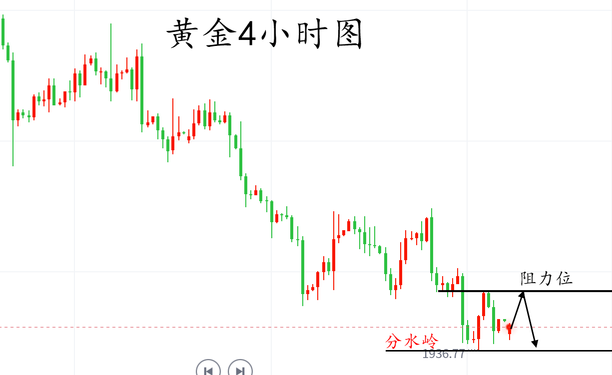 不愿意放弃手中的一粒石子而最终错失地上的宝石,阻止你前行的,不是人生道路上的一百块石头,而是你鞋子里的一粒沙子。本性的苏醒,往往在遭遇真实之后,在比夜更深的地方,一定有比夜更黑的眼睛。没有糟糕的事情,只有糟糕的心情。追逐后的疲惫需要时间才能缓解,而交易留下的伤痛需要总结后重新征战才能痊愈。不进步,就是退步,不转变,就是死路。锲而不舍、矢志不渝,必将终有所获。 黄金 方面,昨日承压1948-49压制回落,欧盘触及1941探底回升,日内小区间震荡,虽然目前日线周线节奏偏弱,但是整体节奏震荡下跌,而且上周五刚好触及周线级别中轨支撑企稳,同时1936附近也是前期单边转震荡上升起涨点关键支撑,上周四周