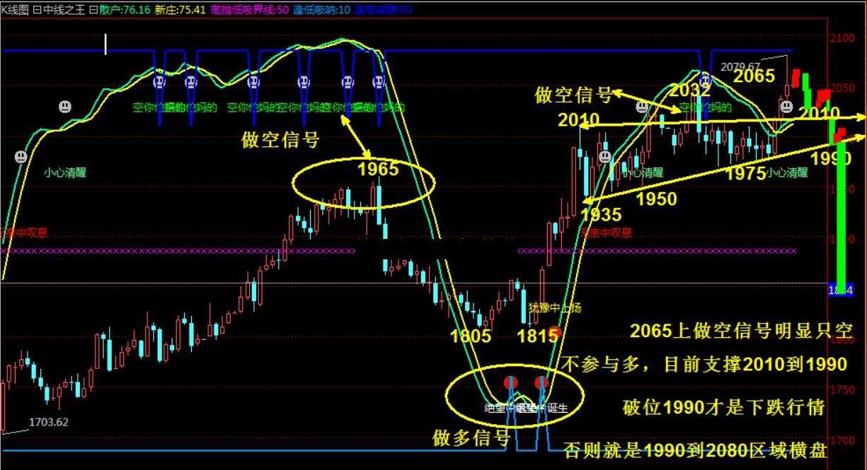 林枫理财:黄金已经见顶,日内反弹就是空 我很庆幸你能停下脚步花几分钟看我的文章,一点小建议,分享出来希望能帮助到各位投资者。林枫作为一位分析师做了这么多年投资,像近期的行情,我经历过很多次了,你现在的心态我也能猜到八九不离十。不要怨恨市场,也不要怪自己。做投资,都是想盈利的,也是我们投资的目的,我懂。但是你亏损了,原因很多,但严重的无非就那几种:不带止损、扛单爆仓,主观意识太强、执行力太差、害怕怀疑心理、否定消极心理等等,这只是总结的部分,如有上述情况或其他情况,可以和林枫好好聊聊,相信我一定能为你排忧解难。 上周黄金收盘2015下周线再次上影阴线,显示2050上压力明显,无非本次在2000