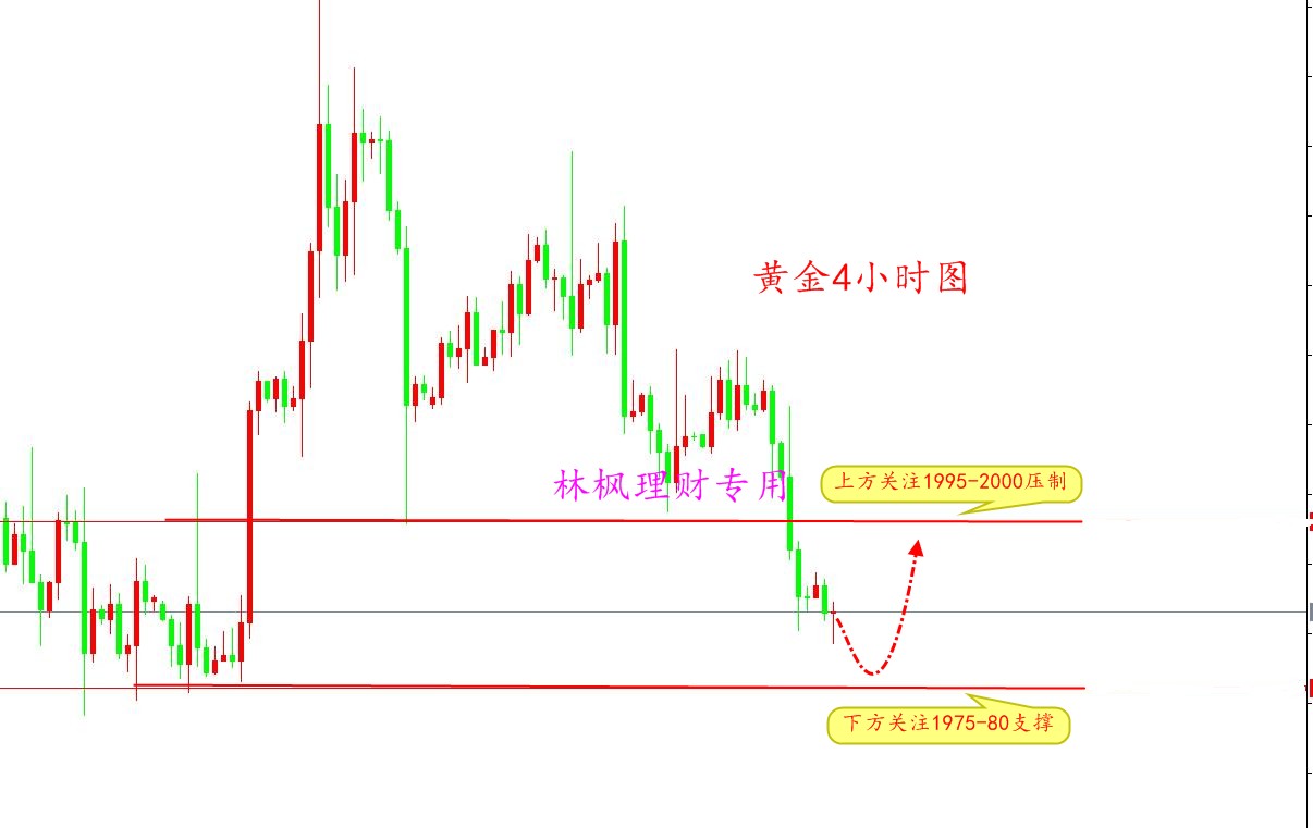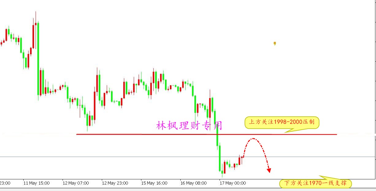林枫理财:黄金如期破位下跌,坚信目标1867 昨日破位2000到2050区域震荡,那么顶底转换2000到2006区域就是成压力,也是反弹再次做空区域,当然如果弱势也许不给你反弹这里,毕竟横盘一个多月,破位走势应该是多空分歧选择方向调整,那么多头撤退,空头再次控制盘面,熟悉盘面行情现在回到1970到2006区域横盘,只要破位1970才能打开下跌空间。同时3月银行破产倒闭高开的缺1867没有回补,伴随加息进入尾声,银行破产也是稍微缓解,自然避险不那么强烈,消息增大波动的幅度和力度,不会改变趋势,当消息过后最后哪里来到哪里去,其实任何品种都是市场人气资金推动,主力借助提前消息兑现炒作,拉高诱多你接