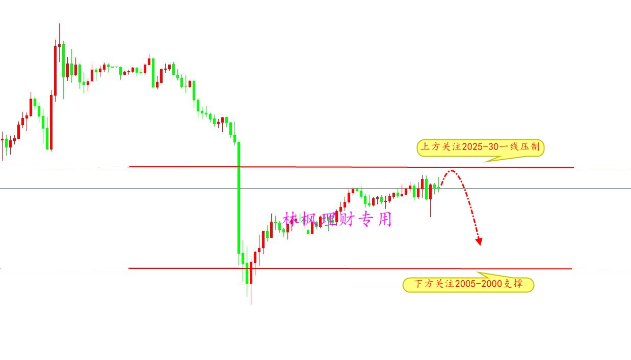 林枫理财:黄金窄幅震荡,日内继续空即可 黄金近期维持在1970—2012区间进行反复震荡,最终美联储如期加息25个基点至5%-5.25%,并暗示将暂停加息,黄金迎来了强势拉升,连破2050关口与2070历史高点位置,最高冲击2080关口。不过随后涨势没有得到延续,并且出现了大幅回落,受非农数据超预期影响下,一度跌至2000大关,吞没此前所有涨幅,回调幅度高达80美金,日内大阴收尾。 昨日黄金没有延续周五下跌,技术反弹修复,但是没有突破2035区域,依然是弱势反弹,本次黄金突破2000区域和前几次有所不同。主要是在2000上结果横盘时间太长,前期基本触及2030区域都是当日出现冲高回落,随后大