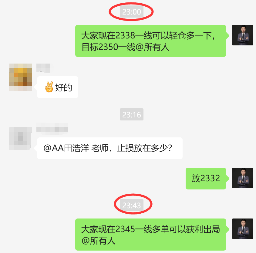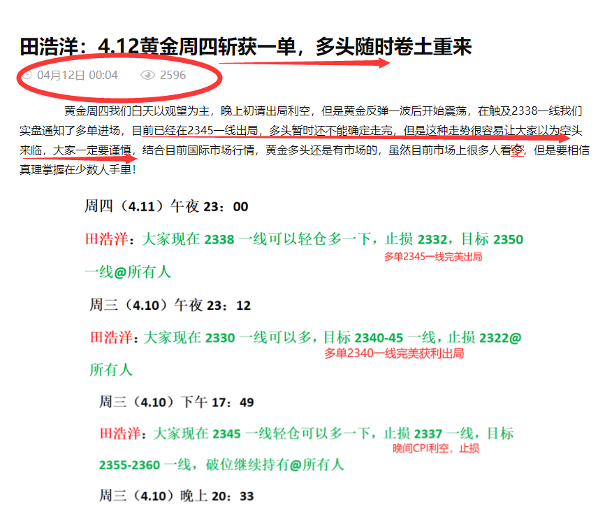 黄金周三可以说的上是大收获,除了美盘前一单CPI利空止损外,其余三单完美获利出局,利润达十多美金,美盘前2345一线多单2337止损,另外2329一线多单在2345一线获利出局,在2320一线多单在2331一线通知获利出局,午夜2330一线多单在2340一线获利通知出局,实盘操作有迹可查!多头趋势回踩做多为主! 从目前行情走势来看,黄金在CPI数据利空下,最低触及了2319附近一线开始反弹,我们多次多单都拿住了十美金以上,现在黄金午夜在2339一线震荡,黄金多头依旧是很强劲的,大家尽量不要追空,回踩做多是趋势,中间位置一律多看少动谨慎追单,耐心等待关键点位进场。具体操作策略我会在盘中提示,及