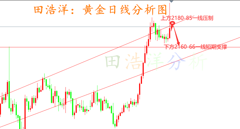 黄金日内冲高回落,最低回撤于2162附近,也相当于基本上是处于一个吞没形态的出现,上下幅度将近达100美金左右,也是在针对市场中多空的互洗,同时日线也是处于长上引线的阴线形态,昨日的上行虽然是有受消息面的刺激引起的,但终究的因素很有可能是因为全球整体黄金的影响,毕竟在经济不景气的情况下,唯有黄金步步高升,而短线内黄金虽有回撤,但后期的上行步伐仍然未有改变,短线内的下跌也很有可能是多头的再度修正,并非是空头的下跌引起的连锁反应。 从目前黄金走势来看,下方的支撑则维持于昨日的低点2160-65附近,但日内可能还需要一定的支撑,而上方压制在2185—95附近位置,同时日线昨日虽然收阴,但仍然受短期