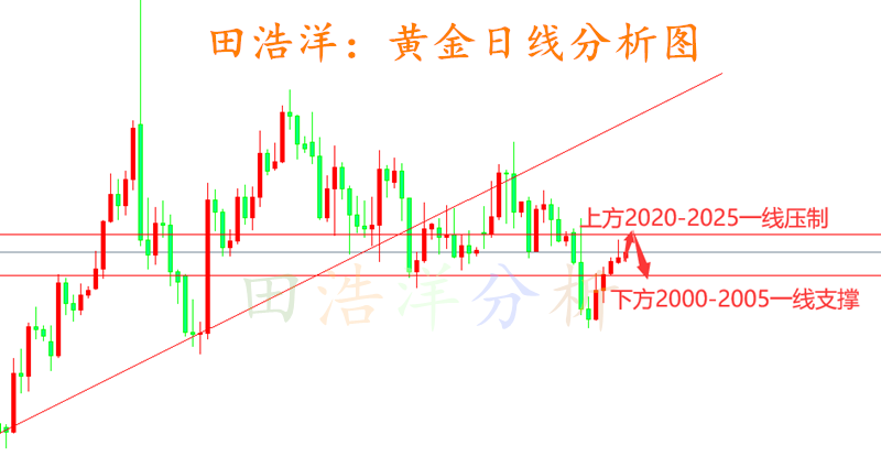 昨日黄金技术面在震荡交投中迎来冲高回落震荡收盘,亚欧盘价格依托2023关口快速震荡回升走高,午后进一步加速冲高刺破2031关口到达2032附近承压回落陷入横盘震荡,晚间美盘二次反抽承压2031关口迎来压制回落震荡破底收盘,日k线报收冲高回落震荡十字k,整体价格在2032关口如期出现压制回落调整,早间上升小幅刺破前一日高点,形成早间上升格局,也明确了分水岭2021,同时这种形态在日线连阳的节奏下,欧盘肯定是多。早间价格回踩了前期2020一线,日线十字K,按照现在的形态来说,日线节奏依然是多。 从日线来看,我们目前关注2023-2025一线短期支撑,不破这里可以多一下,关注上方2040-42一线