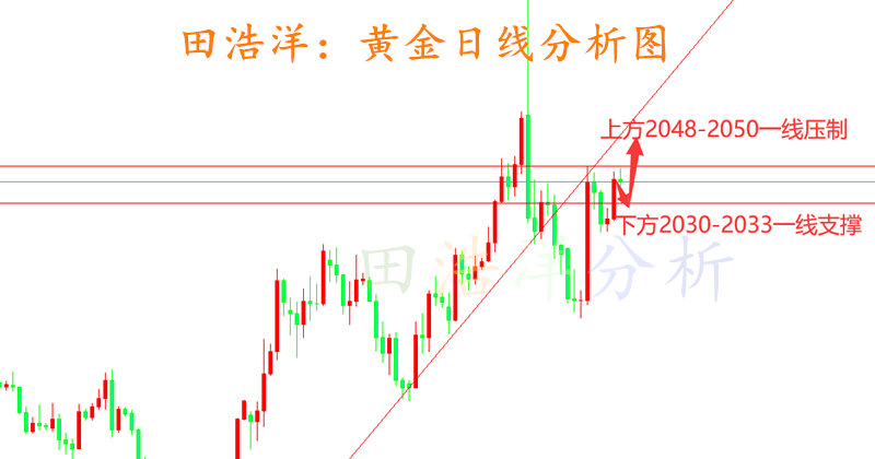 我们最大的困惑,不是迷茫于坚持与放弃之间,而是知道何时应该放手,何时可以执着,只因为放不下一个人,心甘情愿地在不属于自己的道路上固执地前行。感性击溃了理智,知道淹没了能够,我们无力挽回什么,任由心灵如烟花般绽放,演绎了美妙的瞬间! 黄金今日多单再次完美出局,近期的多单都是完美离场,晚间2036-2037一线多单已经完美落袋为安,以目前的走势来看,多头是本周的重头戏,从周初开始就让大家回踩做多,而且每天白天的波动不大,几乎行情都是集中在晚间,晚间的行情比较清晰,也比较容易把握! 从日线分析来看,短期下方支撑继续关注2030-2033附近,上方压力关注2048-50区域,日内先行依托此区间高空低