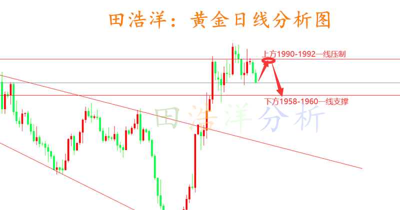 黄金今天1992干空,下跌收割,反弹1987继续干空,黄金文章午后也公开提示现价1987直接干空,黄金再次下跌,今日黄金空已经两连胜,黄金高位干空已经斩获四连胜。黄金顶部结构,反弹继续干空。今天黄金反弹乏力,黄金还是空头占优。黄金反弹就是给干空的机会,黄金今天反弹高点越来越低,下跌的低点也越来越低,黄金多头毫无招架之力,美盘黄金反弹1990下继续逢高干空。黄金反弹1987继续可以先空起来。 从日线来看,今日下方支撑继续关注1980-1978附近,上方短线压力1990-1992附近,先行依托此区间高空低多循环参与看多空震荡运行节奏,中间位置一律多看少动谨慎追单,耐心等待关键点位进场,具体操作策