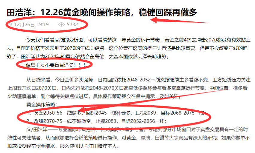大家早上好,昨晚美盘给出的2058一线多单全部在2067一线止盈出局,多单可以说稳如泰山,回踩做多是趋势,而且多头更是方向。最近我们文章全部是做多,不知道大家是否有跟上,希望大家能一如既往的信任我,支持我,2023年即将结束,希望2024大家更上一层楼,生活交易更圆满!!!但是千万不要盲目追多!!! 从日线来看,今日金价多头强势,日内回踩依托2048-2052一线支撑继续主多看涨不变,上方短线压力关注上周五开跌口2070关口,日内先行依托2048-2070关口高空低多循环参与看多空震荡运行节奏,中间位置一律多看少动谨慎追单,耐心等待关键点位进场,具体操作策略我会在盘中提示,及时关注。 黄金操