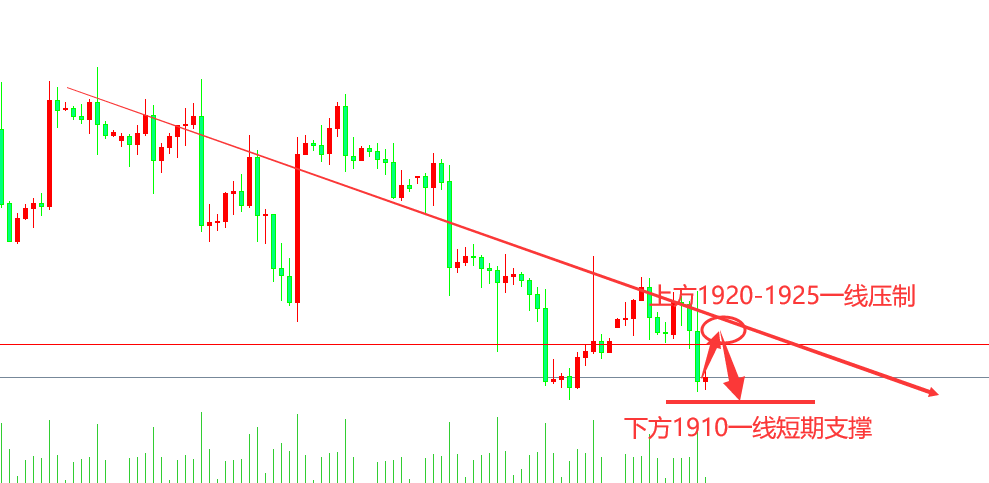 方向对了不怕路远,用时间见证实力,用实力赢得未来,让信任成为利润,用利润解除疑惑。市场瞬息万变,顺势而为,才是王道,趋势来了就是干,不要逆势抄底,免得难受煎熬。交易切记不要意气用事,市场专治各种不服,所以一定不要扛单,相信很多人都深有体会,越抗越慌,浮亏不断放大,搞的吃不好睡不好,还白白错过很多机会,如果你也有这些烦恼,那不妨跟上田浩洋的节奏来试试,看能否找到您的治愈良药! 黄金技术面分析: 黄金周五反抽修正,最高也快速触及到1937附近位置,此动作看似在意料之外,其实也在情理之中,因为在连续下跌的行情之中,很多时候很有刺破性的反抽很强行反抽的洗盘动作,包括多头也是一样,在经过不断的震荡和洗