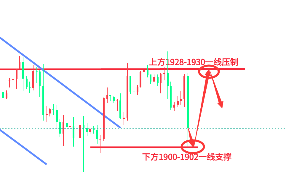方向对了不怕路远,用时间见证实力,用实力赢得未来,让信任成为利润,用利润解除疑惑。市场瞬息万变,顺势而为,才是王道,趋势来了就是干,不要逆势抄底,免得难受煎熬。交易切记不要意气用事,市场专治各种不服,所以一定不要扛单,相信很多人都深有体会,越抗越慌,浮亏不断放大,搞的吃不好睡不好,还白白错过很多机会,如果你也有这些烦恼,那不妨跟上田浩洋的节奏来试试,看看能否让你豁然开朗。 黄金技术面分析: 黄金上周下探回升,再创近期新低1893一线后,周尾慢慢反弹回升收复部分失地,重新回到区间内运行,同时收复了千九关口。周线收盘小阴十字K线。局部震荡修正当中。日线双连阳反弹。轻微止跌修正。目前的反弹当作是修