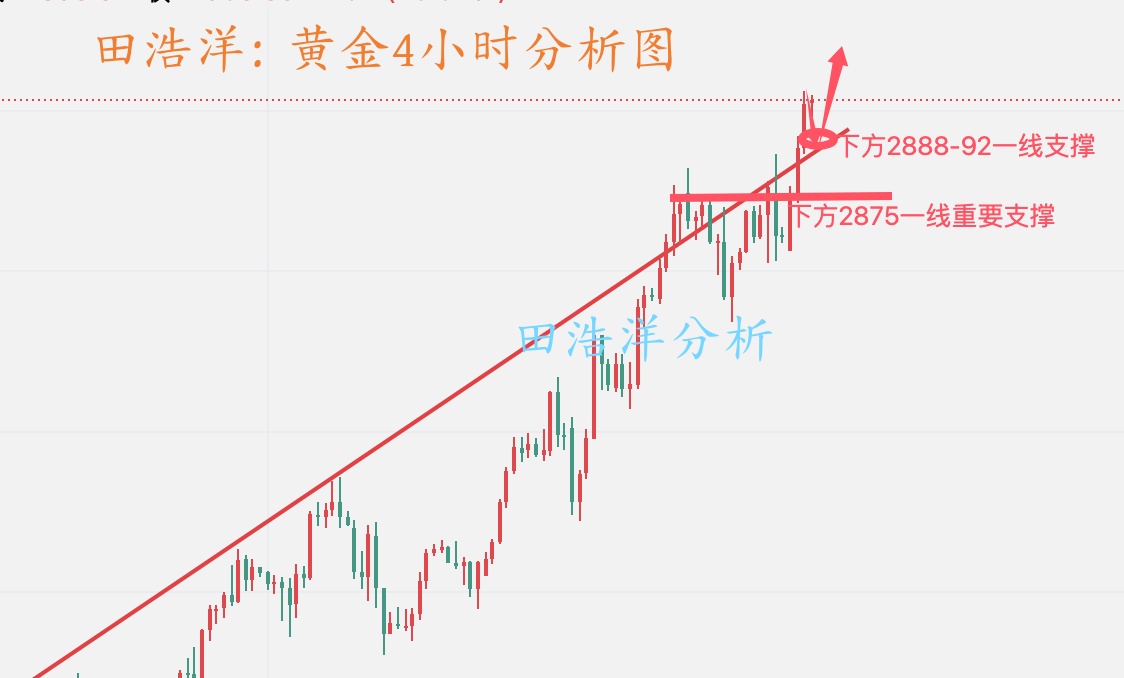 黄金多头已经杀疯了,目前已经站稳2900一线上方了,从上周非农数据公布前我文章就讲过非农后黄金即将冲上2900一线上方,相信关注我文章的朋友都知道,非农前我在2855-60一线给出多单,非农开盘回落在此区间直接冲高,最高到了2887一线,我们的目标在2880一线也是成功抵达,今天开盘我文章也是给了顺势看多,很多其他人文章看空,相信大家有目共睹,如果逆势做空的人现在应该也是很难受了,黄金本人一直强调回踩调整就是给机会做多,这个话大家应该再熟悉不过了,本人一直致力于黄金市场,如果你目前黄金操作不理想,希望田浩洋能让你的投资少走弯路,欢迎前来沟通交流! 从目前4小时黄金走势来看,黄金目前在2900