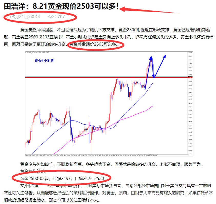 上周五黄金价格总体呈现大幅上涨的状态,当日价格最高上涨至2509.6位置,最低下跌至2450.66位置,收盘于2507.03位置。回顾上周五黄金市场表现,早间开盘后价格短线震荡后欧盘向上拉升,并且美盘前四小时最终大阳收尾,随后美盘期间价格再度强势上涨并再创历史新高位置,日线及周线均大阳状态收尾。跟上田浩洋操作,让你投资少走弯路! 黄金下方现在关注两个支撑,第一就是上周五第一次的承压回落位置2500附近,第二个就是上次的历史高点2483附近,黄金日内波动不大可以在回踩2500附近的时候先做多,如果再次弱势下行,考虑在2476-83一线位置接多,黄金不断刷新历史高点,就必须要顺势做多了,现在毕竟
