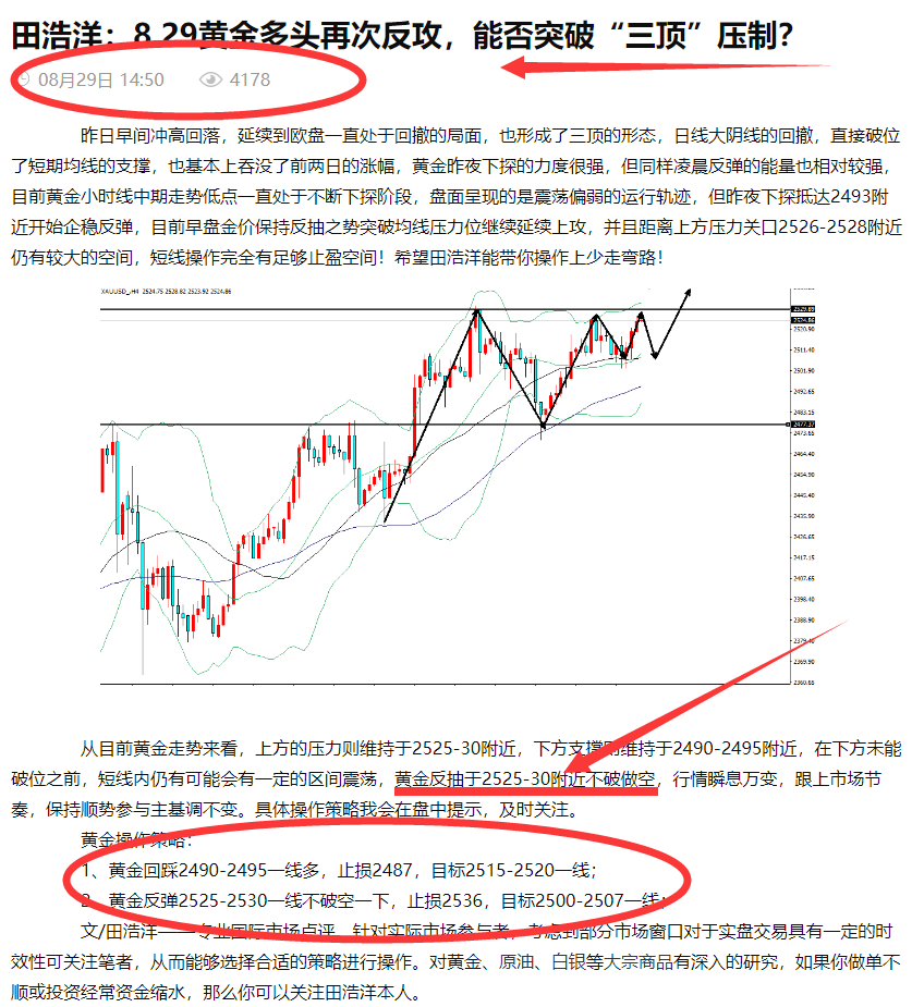 黄金今天非农大获全胜,非农数据公布后,我及时在群给了先跌后涨,黄金在数据公布后回落触及2510附近后开始反弹2530一线,随即我们直接给出了2530一线的空,下放看到2507-10一线,后面黄金也是最低回踩了2502一线,接着让大家继续反弹做空,也给出了做空的位置2513-2518一线空,黄金反弹2517附近开始回踩,目前黄金在2495一线,相信关注我圈的朋友看得到更新,如果你投资路上比较迷茫,建议你可以和田浩洋交流沟通! 从目前黄金走势来看,黄金上方目前形成“5顶”2530一线压制,下方继续关注2480-2482一线支撑,操作上依旧是以反弹做空为主,具体操作策略我会在盘中提示,及时关注。