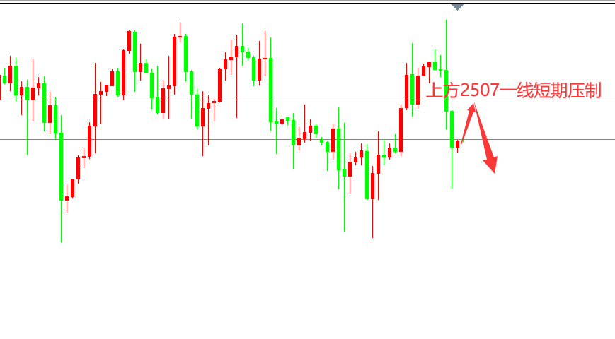 黄金昨日开盘后小幅度的回撤,再次发力,最高触及到2527附近后回撤,逼近了前期的高点,但遗憾的是,多头并没有再次突破高点,反而承压回撤,凌晨虽有二次反扑,终究还是昙花一现,需要注意的是,早间开盘后直接开启了下跌模式,目前行情仍然处于弱势形态,而这种形态我们需要等待欧盘的确认之后方能确认后期的多空方向,稳健操作才是获利之道,希望田浩洋能带你操作上少走弯路! 从目前黄金走势来看,上方的压力则维持于2518-20附近,下方支撑则维持于2496-2500附近,目前价格仍然居中,多空还需要等待,理想进场时间需要等待欧盘走出强弱之后美盘再次跟进,而在下方未能破位之前,短线内仍有可能会有一定的区间震荡,则