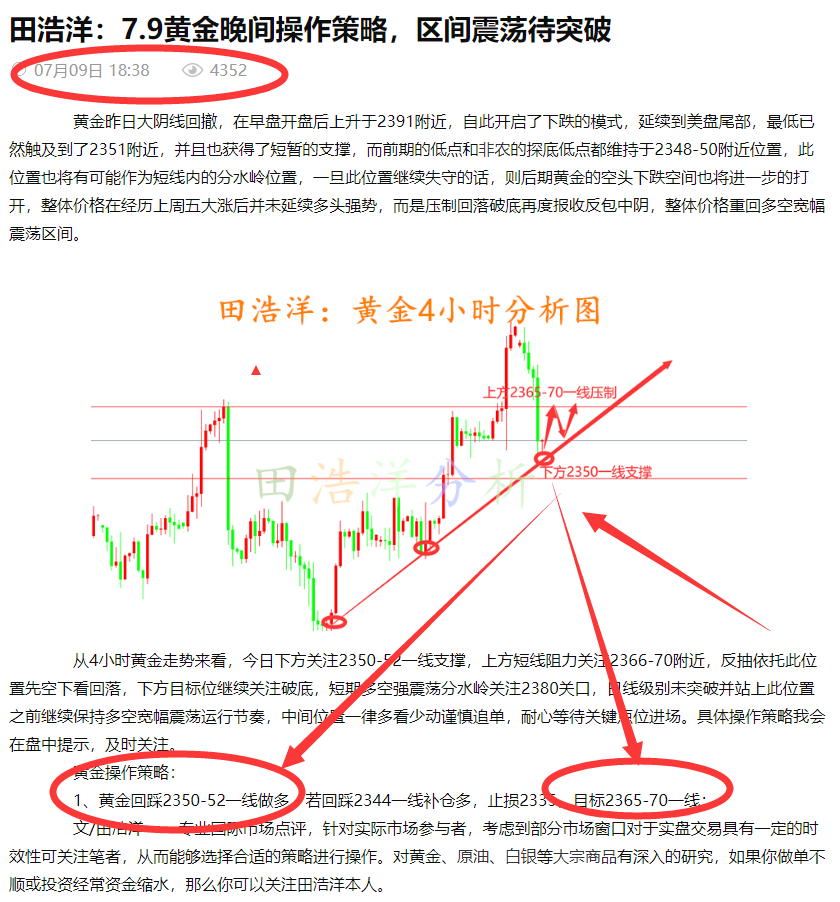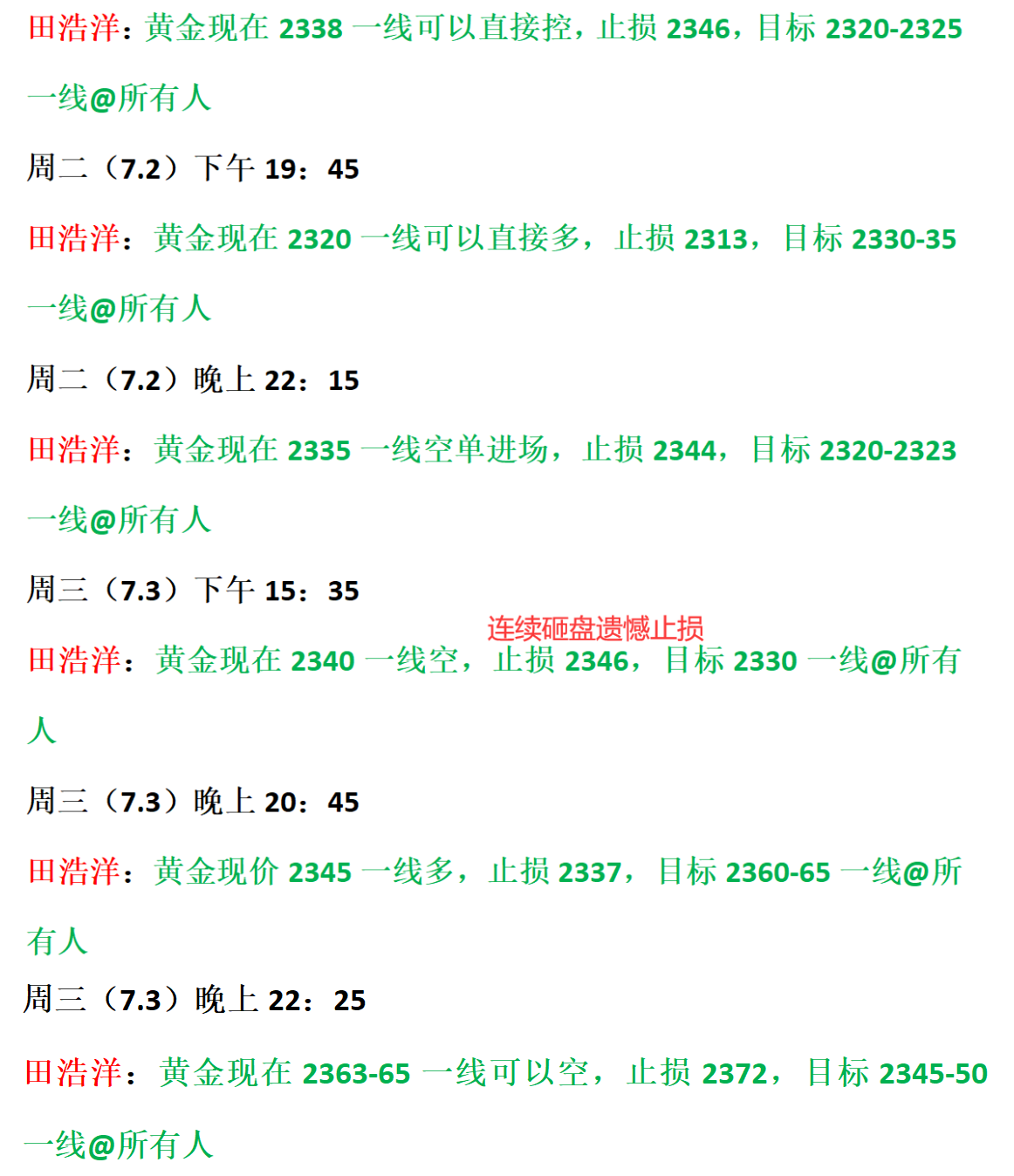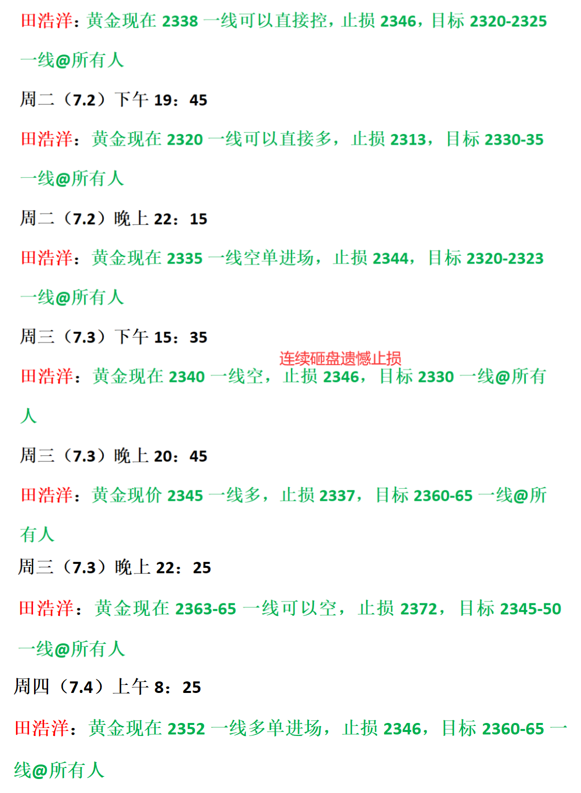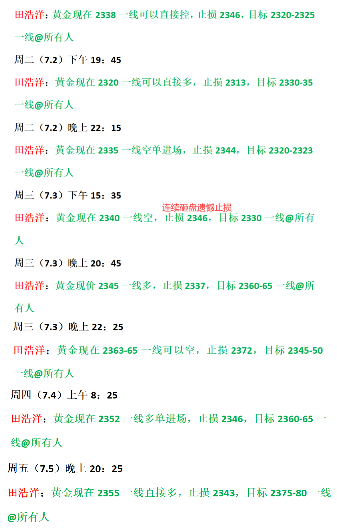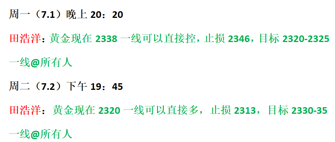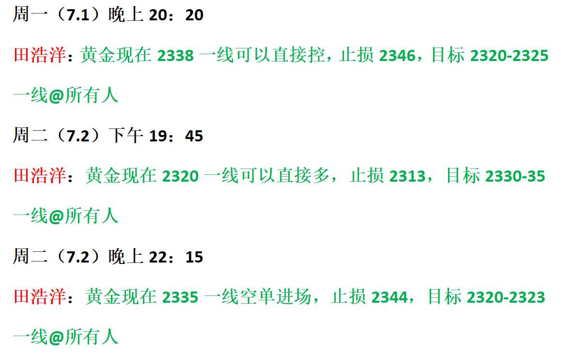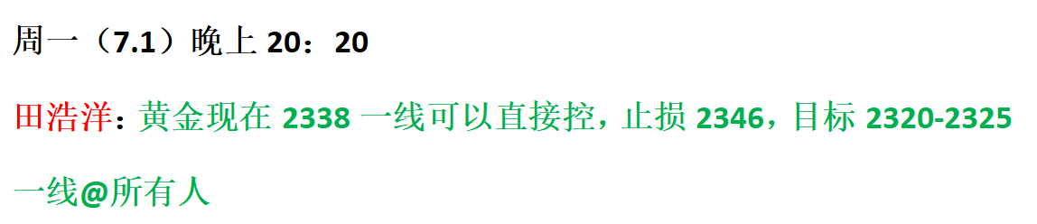 人生只有不够坚持的放弃,而没有彻彻底底的失败,就像交易一样,本来看好一个方向,但随着行情的波动,却改变了自己原有的方向,原本看涨,却因盘面弱势而出局反手做空,最终既耽误了上涨趋势又逆势造成了亏损,这样的例子在交易当中不胜枚举,任何成功都需要坚持。有些地方需要如履薄冰谨慎而为,而有些地方则需要大胆坚定并放手一搏,危机与机遇并存,只是我们需要练就从危机中寻找机遇,从机遇中成就自己的能力。 黄金上周五非农狠狠地揍了看空的脸,非农我们提前在2355一线多单,也是成功到了止盈目标,上周五午夜我们也是继续以看多做多为主,很多人看高空,结果可想而知,不是深套就是止损了,也是比较惨的,这样明显的多头,回踩就