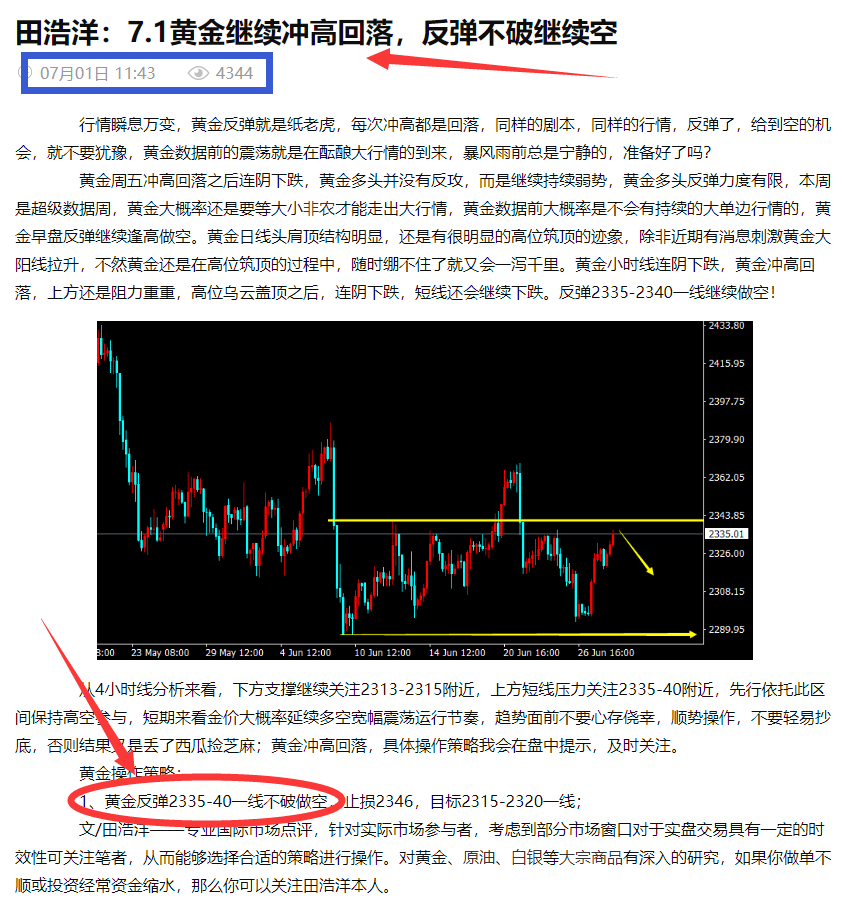 黄金今天白天震荡上行,最高触及2338一线,美盘开盘后开始回踩,截止目前最低在2327一线,本周数据周,数据之前应该不会出现大单边行情,也没有什么消息面的支撑黄金上涨,黄金反弹高位,短线承压上周高点2340一线的压力,还是继续空一下;黄金反弹2338-40继续空!黄金短线上涨承压,美盘继续空了,逆水行舟,不进则退,黄金开始震荡,又在等大非农的到来,现在又是暴风雨前的宁静,开始酝酿大行情了,黄金后半周又将风起云涌。 从4小时线分析来看,下方支撑继续关注2313-2315附近,上方短线压力关注2335-40附近,先行依托此区间保持高空参与,短期来看金价大概率延续多空宽幅震荡运行节奏,趋势面前不要