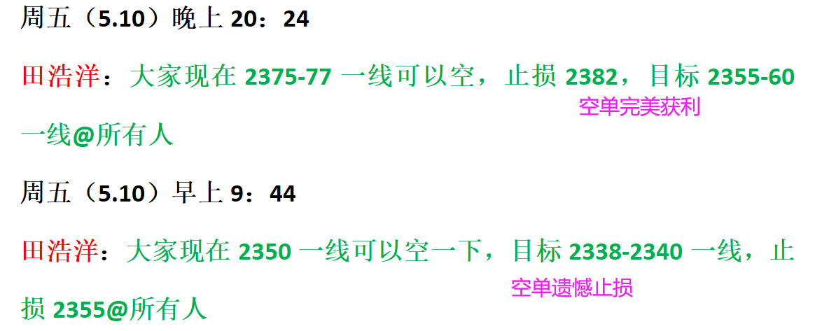 黄金周五早间开盘震荡拉伸,早间我们在2350附近做空,也止损在2355一线了,但是晚上反弹2377一线后开始出现回踩,我们实盘就在2375-77一线开始布局空单,美盘后行情回落,我们成功在2358一线全部获利离场,虽然行情盲目冲刺,但是我们不要随着市场上那些人的分析追多单,今天可能很多人套在了2375上方,甚至有的人分析今晚看2400,这些天方夜谭的分析,希望大家能分辨一下,午夜行情可能会持续震荡至收盘,祝大家周末愉快,下周我们继续做精准分析! 从目前黄金走势来看,下方我们关注2350-2357一线支撑,上方关注2373-2377一线压制,午夜行情趋向于震荡回落为主,中间位置不要追单,具体操
