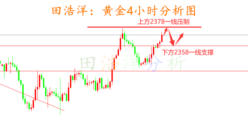 黄金今天走势属于震荡慢涨的势态,白天给的2364附近空单刚好打到了2374止损,虽然止损了,但是我们绝不会去在现在的高位去追多,晚间CPI数据还没有公布,技术面来看追多也是存在一定风险的,稳健的朋友我们等待晚间数据公布,不要急于一时的操作,目前从4小时来看,黄金与之前上方2378一线可能形成短期的双顶压制,如果这一技术面成立,那么我们关注此位置是否能突破,反弹触压再做空,具体我们也要等待CPI数据公布再进行布局! 从目前走势来看,我们关注上方前期2378一线压制,下方关注2358一线短期支撑,操作上我们先等待晚间CPI数据公布,耐心等待关键点位进场。具体操作策略我会在盘中提示,及时关注。 黄
