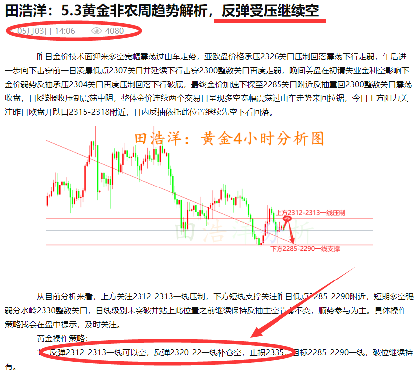 上周五金价在非农就业数据小幅利多影响下迎来快速冲高承压2320关口回落震荡破底收盘,盘中一度向下加速击穿2280关口到达2277附近反抽于2300整数关口附近,日k线报收压制震荡十字k,整体价格在2320下方依旧呈现压制偏空震荡。今天我们实盘早盘2314一线空单进场,在2308一线获利出局,本周两单开门红完美把握!下午2323一线空单也已经完美获利2317一线出局! 从目前走势来看,今日上方压力关注2328-30一线,日内反抽依托此位置继续主空下看回落,下方短线支撑关注2280-2285附近,短期多空强弱分水岭关注2330一线,日线级别压制此位置下看继续弱势偏空震荡,继续保持反抽主空节奏。具