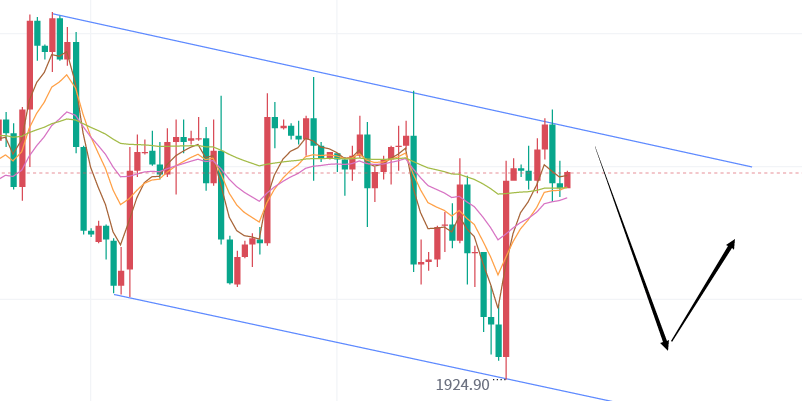 金药师:6.17本周黄金走势解析及下周操作思路 本周黄金解析: 在黄金的整个震荡周期中,我们可以将其分为三个不同的阶段。根据目前的走势,我们来讨论一下是哪个阶段的走法和分析。 阶段一:1985-1935的上下空间震荡。在这个阶段,黄金价格呈现短期震荡的特点,价格上下波动较大,多空双方频繁换手。这个阶段可以看作是震荡的初期阶段,短期多空动能表现较强,导致价格的拉涨和回落空间都比较大。市场上存在多空双方的博弈,但在反复的波动中并没有形成明显的多空优势。 阶段二:1970-1940区域的震荡。在这个阶段,黄金价格围绕这个区间内进行短期窄幅震荡,多空转换的频率降低。随着多空动能的消耗和市场情绪的变化