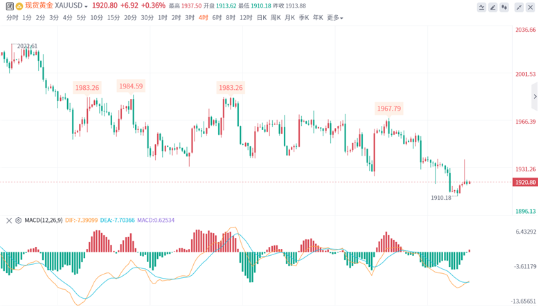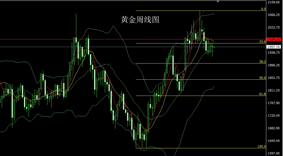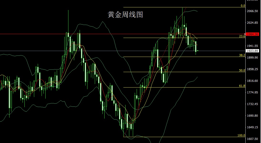 金药师:6.24本周黄金走势解析及下周操作思路 本周黄金解读: 周五(6月23日)当周金价震荡回落。国际金价有望创下逾2%的2月初以来最大单周跌幅,美联储鲍威尔国会证词释放鹰派基调言论重挫金价,另外英国央行、瑞士央行等接连升息,全球央行的加息也给金价带来压力。目前市场仍然对美联储后续政策基调存在一些分歧。 展望下周,投资者需要重点关注美联储重要官员的讲话,其中就包括周三美联储鲍威尔的讲话。同时英国央行行长贝利,欧洲央行行长拉加德等其他央行行长,也会发表言论。数据方面,关注美国一季度GDP终值。同时,俄乌冲突等其他地缘局势的变动都是大家需要关注的对象。 下周黄金走势分析: 黄金在周五展开了一次