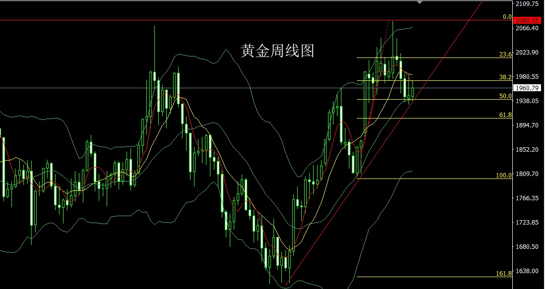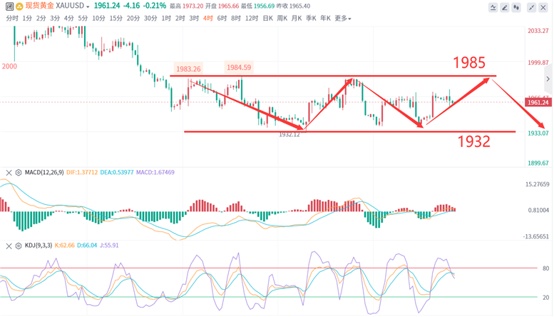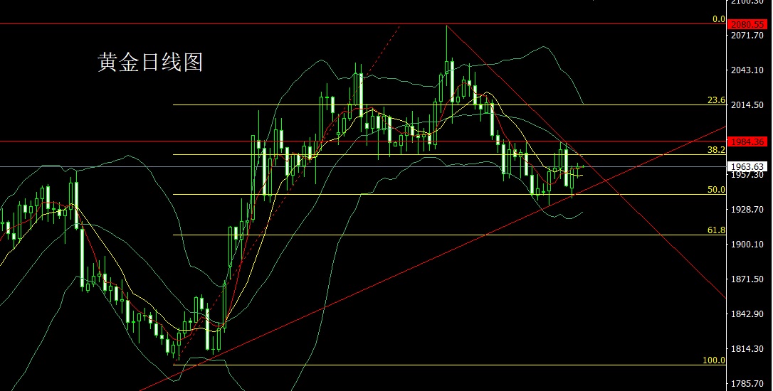 金药师:6.10下周黄金走势分析及操作思路 黄金资讯消息: 6月9日当周金价震荡小幅攀升,金价在1960美元附近持稳,市场在耐心等待下周美联储6月决议。美联储6月不加息的预期升温,这支持金价本周上涨。此外,全球经济放缓的担忧,以及表现不佳的美国数据也支持了金价。下周投资者将迎来至关重要的美国CPI数据,以及美联储利率决议,预计将引发下周市场重大行情。美联储将在美国东部时间下周三(6月14日)下午2点宣布决定。随后,美联储主席鲍威尔随后将于2:30举行新闻发布会。 黄金下周趋势: 黄金价格整体围绕在1985-1930之间宽幅震荡,日线图显示,如果金价跌破5月30日的低点1932美元,将打开新的
