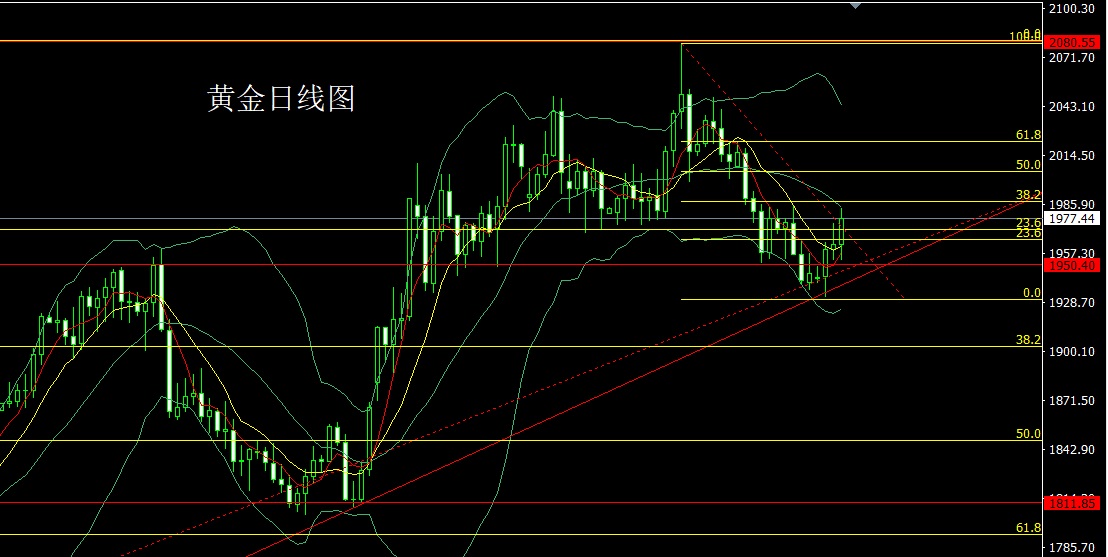 金药师:6.6黄金白银原油技术分析及操作策略 今日基本面分析: 昨日美国5月ISM服务业指数意外跌至50.3,处于略微扩张状态,4月工厂订单表现同样不太乐观。数据公布后,美元指数转跌,一度失守104关口,金银借机拉升,今日的基本面主要关注22:00的美国5月纽约联储全球供应链压力指数。 黄金技术分析及操作策略: 昨日黄金市场早盘小幅低开在1946.1的位置后行情先回落,日线最低给到了1937.7的位置后行情强势拉升,日线最高触及到了1964.1的位置后行情整理,日线最终收线在了1961.5的位置后行情以一根下影线长于上影线的大阳线收线,而这样的形态收尾后,今日的行情回踩多,点位上,今日的行情