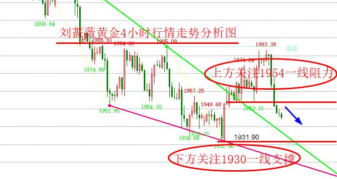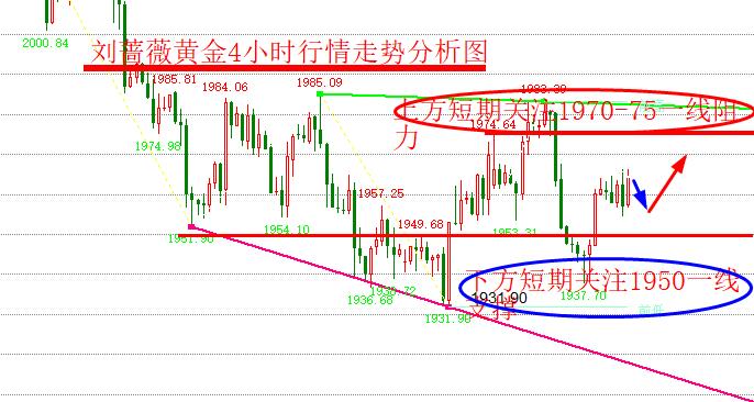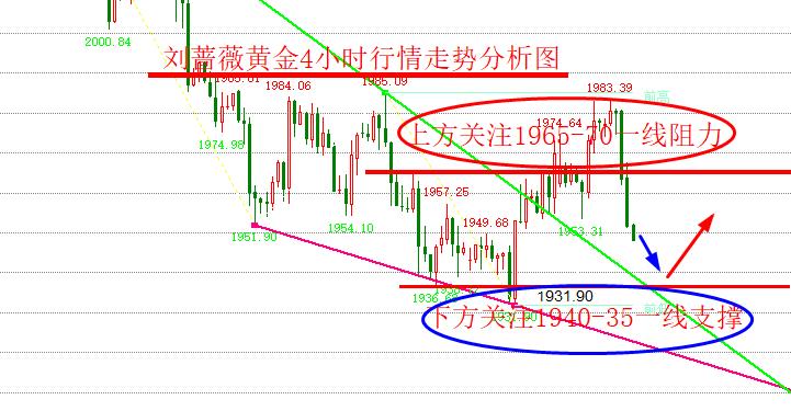黄金昨日先抑后扬,日线下探回升收盘中阳K线,先行下探1931.7附近启稳,欧美盘时段回升收复失地,并将上周五的高点收复。最高触及1963.6.且尾盘在高位,日线伴随下探回升后收回高位。打破了此前的弱势台阶,同时短线也收在台阶通道之上。日线进入反弹修正。周线轻微启稳中轨之上。短期不破中轨1930暂时下行空间受限。 黄金4小时图一波低位连阳回升,打破了此前的弱势阴跌,同时收盘在下行通道之上。目前布林道下轨收口,昨日触及下轨启稳回升,短线走反弹。今日亚盘先看一波延续性的反弹。上方空头临界留意1985.下跌浪形的尾端起涨口,此位收复则反转。目前在此位之下的反弹暂时还 是当作修正。局部