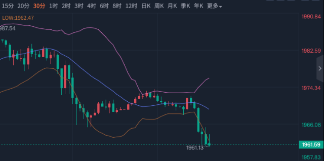 黄金想破2000没那么容易,随着昨天冲高回落,黄金日线收倒锤,进入了高位整理阶段,今天是继续看回调,还是说回过神来往上反弹? 在产生前中枢的第三类买点之后,初请利空走势背驰回拉接近原中枢,差一点就进去了,背驰的力量不够强,使得扩展继续延伸原来的走势,此时更大的中枢是随时可能形成的,但站在走势终完美的角度,原来的走势并没有改变方向,这样符合了黄金多头趋势并没有改变。 不过我们如果保持看涨,就不太愿意看到跌破1964,因为调整的周期就延长了,1987可能是短期内的一个高点了,见缩量也不反弹,黄金有反弹但不能形成拉升,就目前来看黄金会依托于昨天跌下去的筑底,再朝上面反弹一下,可能会摸到1975/1