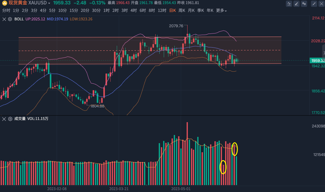 从日线来说,昨天和5月30那天的两个阳锤,形成了区域性的底部支撑,这也是我们要不要去看连阳的出发点。这两个阳锤有没有区别呢?是有的,前者是缩量的上涨,后者是放量的,缩量的上涨,往往说明是底部,没有太多人去锁空,一般代表庄家进场,昨天是放量的,那么就说明对上涨的空间出现了担忧。 和我们担心的一样,想看涨又不知道能涨到哪里,这里面有情绪主导,要排除掉。客观来讲,美元要冲高,但是很难涨到很高,因为通胀有点反弹了,而CPI和PPI的数据是在下周公布,那么美联储如果还想加息,那么美元不会提前涨到很高的位置,那么美元很可能冲高回落,而黄金可能是直接涨,或者回调再涨。 所以这个连阳可以看,在哪里看呢?等等