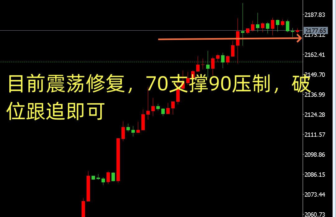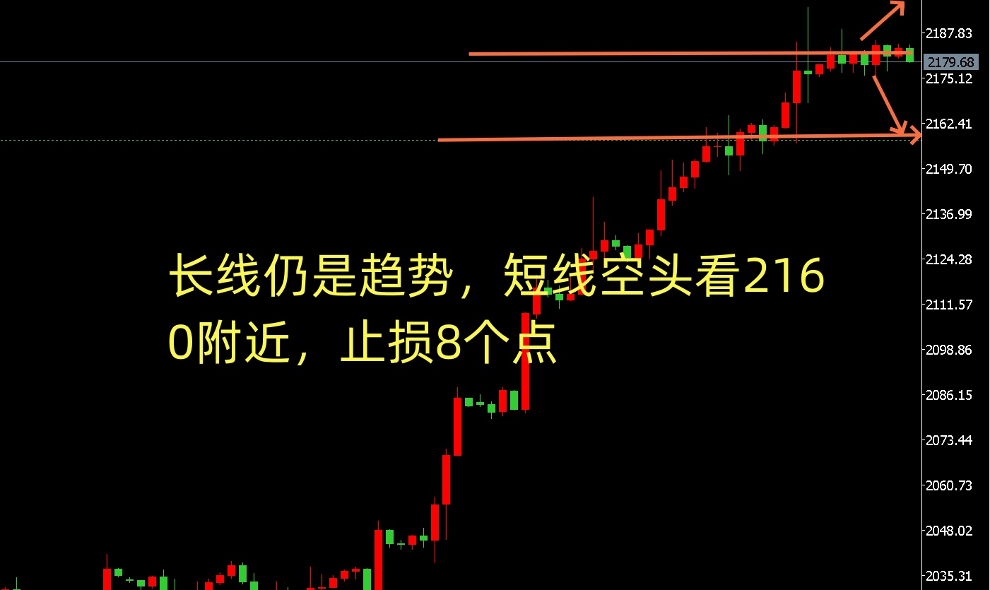 黄金持续高位盘整,并不是空,属于典型的修正行情,这种修正,即使盘中出现快速探底或震荡慢回调,仍是做多机会。主力的洗盘手法,慢涨对应急跌,急涨对应慢跌,慢跌对应急涨,这是主力不变的戏法。所以黄金这种高位横盘,无论怎么变换手法,趋势不变。所以,要么场外观望,要么直接多等拉升,等待出现下探机会再补仓进场。 值得注意的是,黄金目前已经进入高位盘整修正期,所以,多头即使拉高,但是走不远,只要拉高,多单就需迅速离场,黄金拉高之后很可能又会出现快速回调,然后再拉高。掌握好节奏。 操作建议:今天给两个点位:突破2185做多(15分钟级别收线突破),止损2180,止盈看2192;突破2176.5做空,止损21