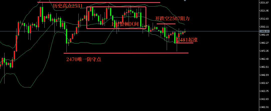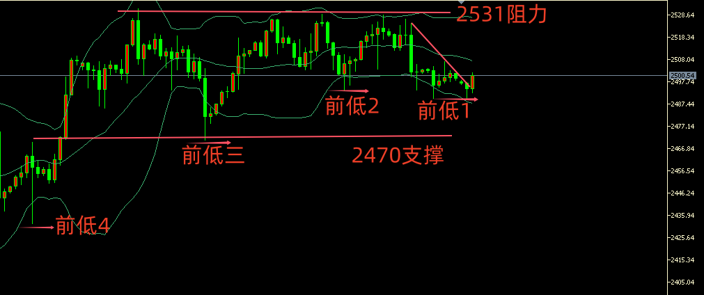 分析不能当饭吃,却是吃饭不能丢掉的家伙,或许你觉得看到郑晟银策略时已经为时已晚,那么晟银告诉你你,当你后悔莫及时正是从头开始时!这个市场没有谁可以完全预测行情,却有人会用踏实的分析努力避开风险。如果你看了晟银每天连载的文章,我相信你会对行情有新的认识与见解! 黄金分析: 金价上一轮起涨反弹就是2470一线,昨日最低从2473开启反弹走高到2490出现较大反弹,说明下方买盘支撑较强。短期内黄金价格走势趋于震荡下行,或许这也成为近期的主方向!本轮金价回撤是自上周开始,现阶段是延续回落走势,即便有反弹,也是遇阻后再转空,而非直接上涨突破,因为并不具备突破动能,也就是没有事件或数据加以支持