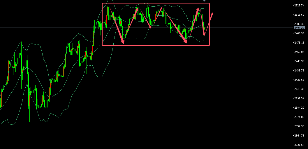没有清醒的判断,再好的行情也会踏空,没有谨慎的分析,再弱的震荡也会失手。我只想把我的肺腑之言告诉各位投资朋友,选择大于努力!一个人能走多远,要看他有谁同行;一个人有多优秀,要看他有谁指点;一个人有多成功,要看他有谁相伴。如果你在投资路上彷徨,不要在犹豫不决,借力使力才是王道! 黄金分析: 近期金价在2530至2470区间内大幅波动,并没有一个很明显的方向。在日线方面可以看到MA5日和10日均线贯穿K线来回运行,阴阳线来回转换,所以妥妥的区间震荡,同样也都被前面大阳线包裹中,属于多头中的震荡修正。 上方2529一线已经测试了多次,虽然上方有阻力,但是每次测试都没有延续性破新低,而