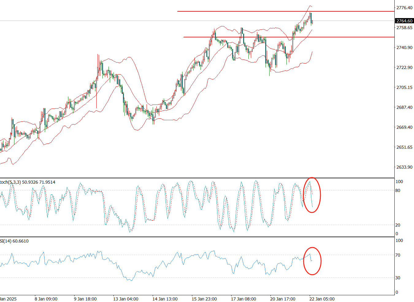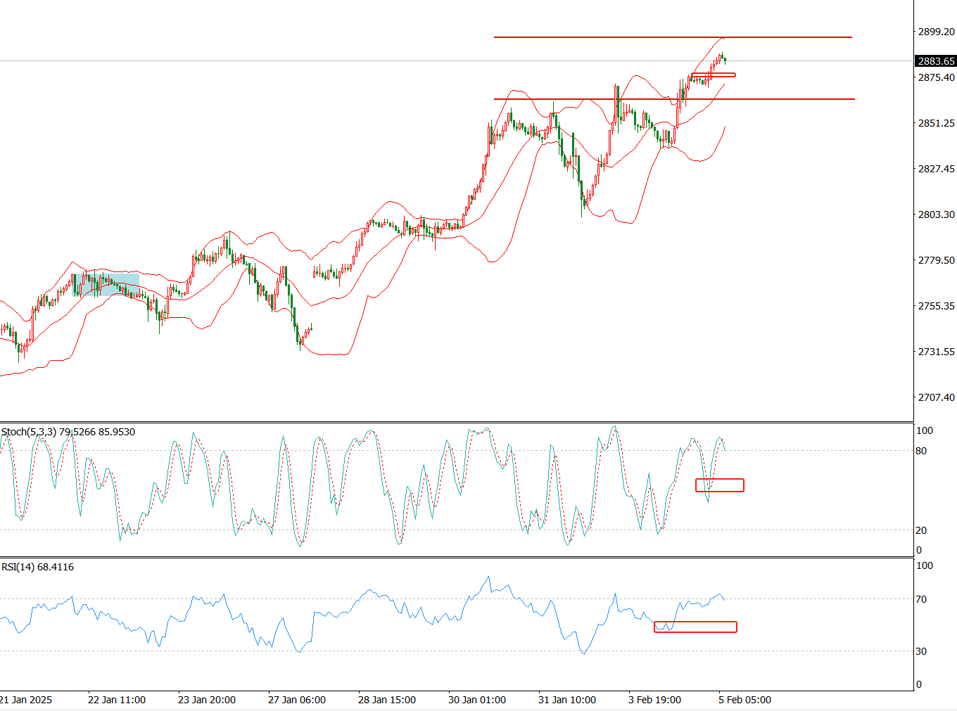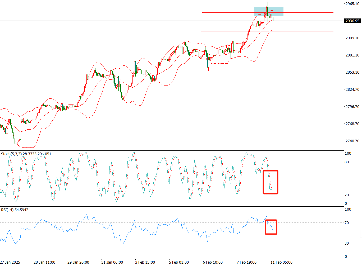 昨天金价和美元延续了跷跷板的正常关系,美元先跌后弹,金价则冲高受阻回落。短期市场仍在交易特朗普政策的不确定逻辑,加拿大和墨西哥之后,又威胁对大熊和兔子加征关税,通胀预期进一步得到强化,美债收益率小幅上行,黄金虽有抗通胀的功能,但金价和货币政策的走向则联系更为紧密。美联储宽松的预期在下降,金价短期就或难有大的作为。 另外需留意美股的走势,当前三大指数标普已经新高,纳指和道指应该也会跟随。地缘方面的中东问题也在缓解。风险情绪的提升,避险情绪的回落,也会在短期压制金价。 技术上看,昨日金价在大涨后,我们提示指标已经进入超卖区域并随后下行,预示着短期进入到震荡阶段。金价