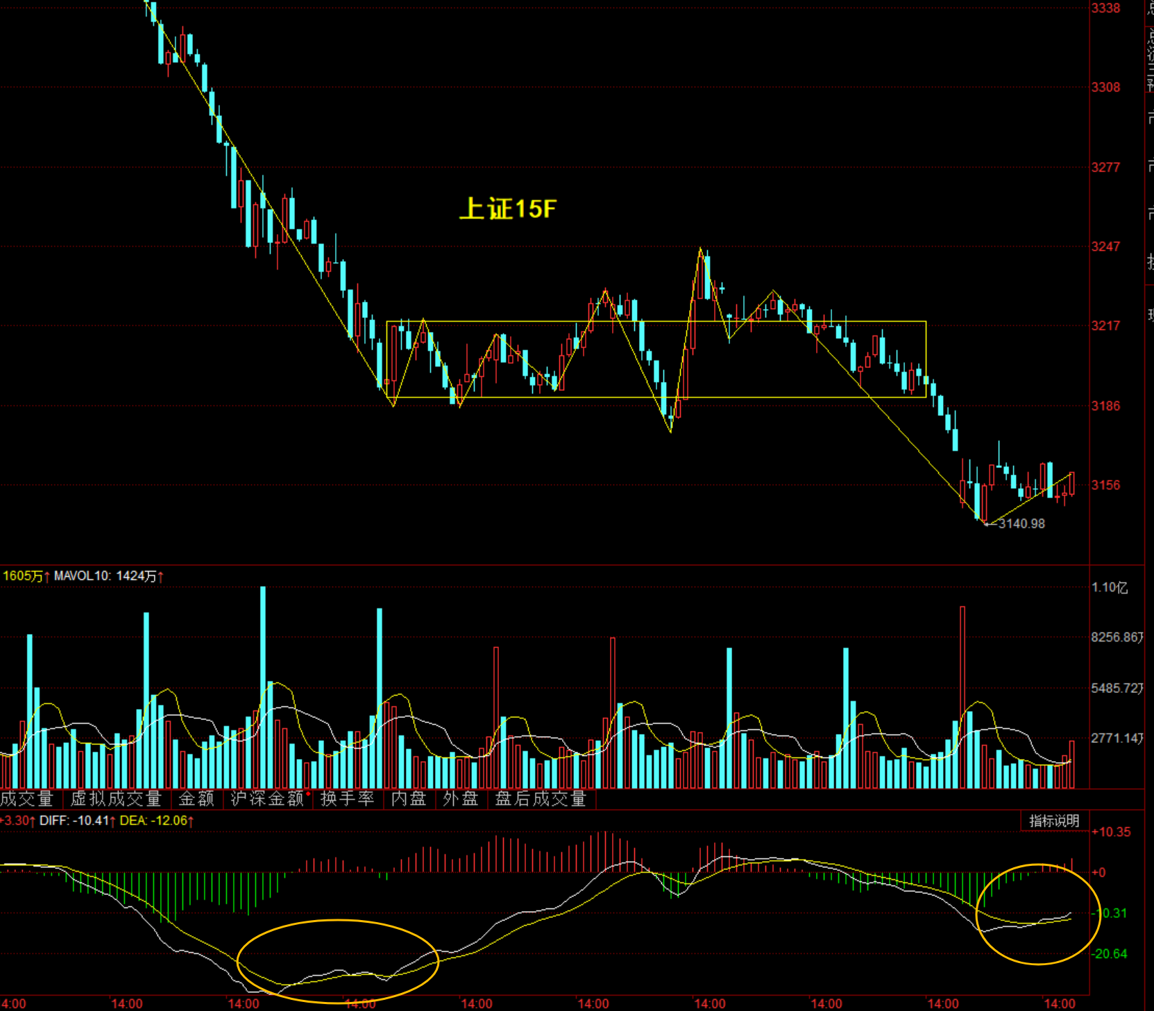 今日早盘直接恐慌开盘冰点,周末情绪就是悲观一片,各个论坛噤若寒蝉。然而,市场上的共识,往往都是错的,也可以换句话说,共识就是用来打破的,当空头异常强大时,也可能是飞龙在天之时。 不管怎样,走势都是当下的,今天指数是低开后修复了,技术上也走出了一定的止跌形态,量能继续萎缩,所以,当跌不跌,有可能进入到了筑底阶段。而小级别上,也进入到了背驰段。 当跌到大家都认为缺口必补时,可能就扭头向上了;未来大家都认为缺口强支撑时,可能会再回来补。怎么应对,一步一步跟随就好。