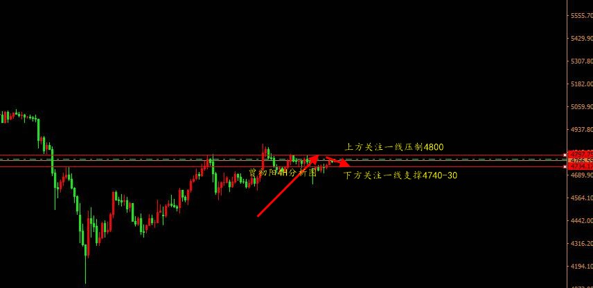 曾初阳 4:14黄金日内区间小幅震荡 短线为主 早间一波上涨后又是陷入震荡,4762-4777,午后价格出现小幅回落,当前价格4762已经有继续下行苗头。目前区间指数来回震荡,没有实质性的消息很难打破此类僵局,现在主要以日内短线为主。早盘黄金小幅跳空高开,日内重点留意缺口位置,4730-4740将转为日内支撑;上方先看当前实体阻力位,更远一点的4820-4840可作为后续参考,今天重点关注收盘表现。 现价4766附近多,见4758附近加多,止损4745 目标4785-4800